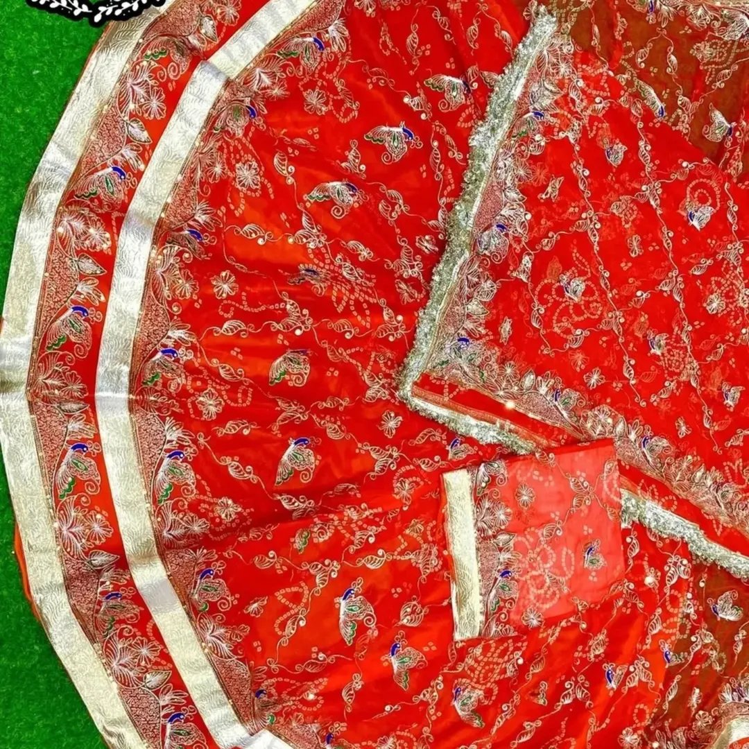Odhani Work : Heavy Odhani four side work with Heavy Butti Jaal work with Gotta turri