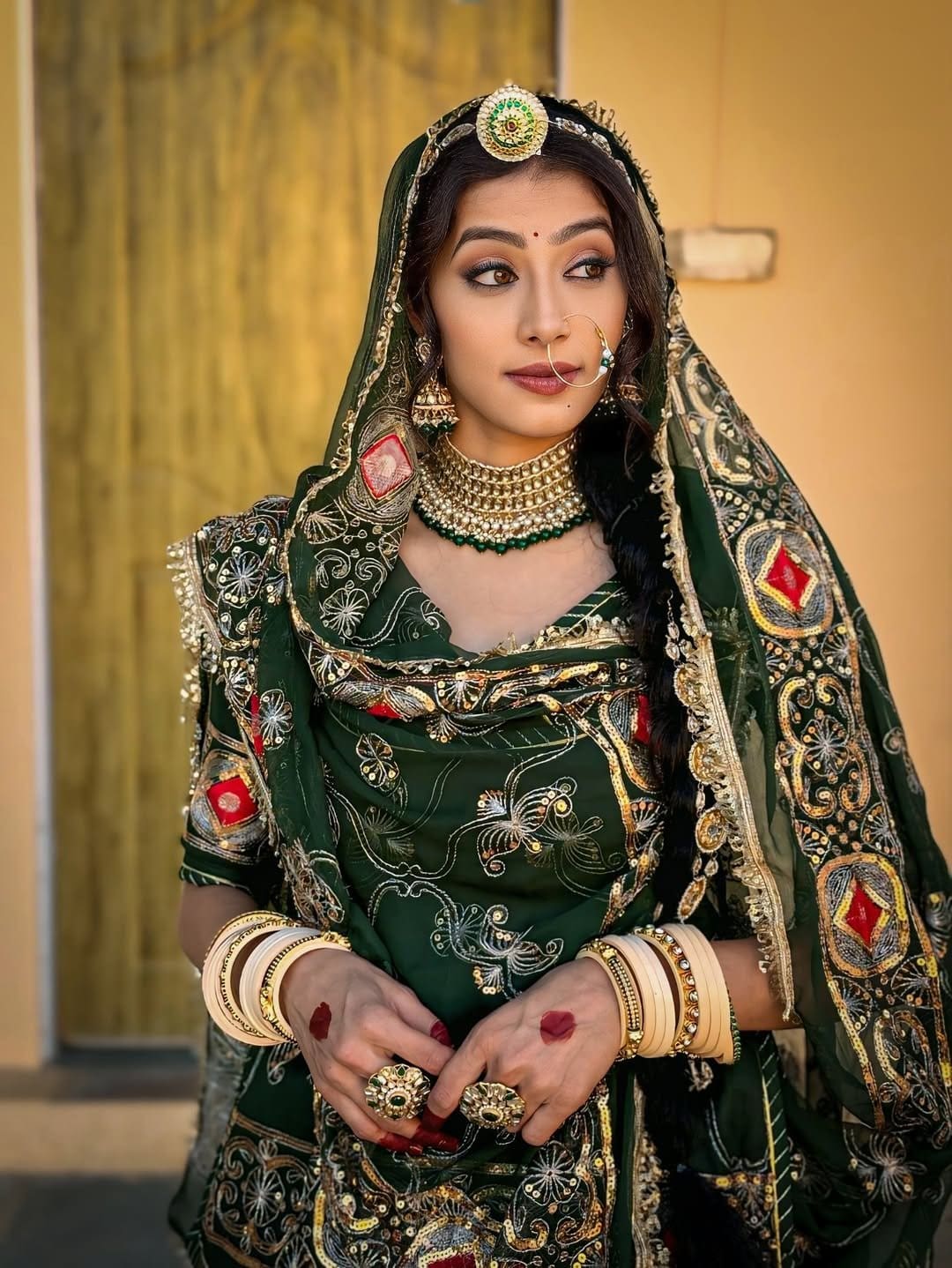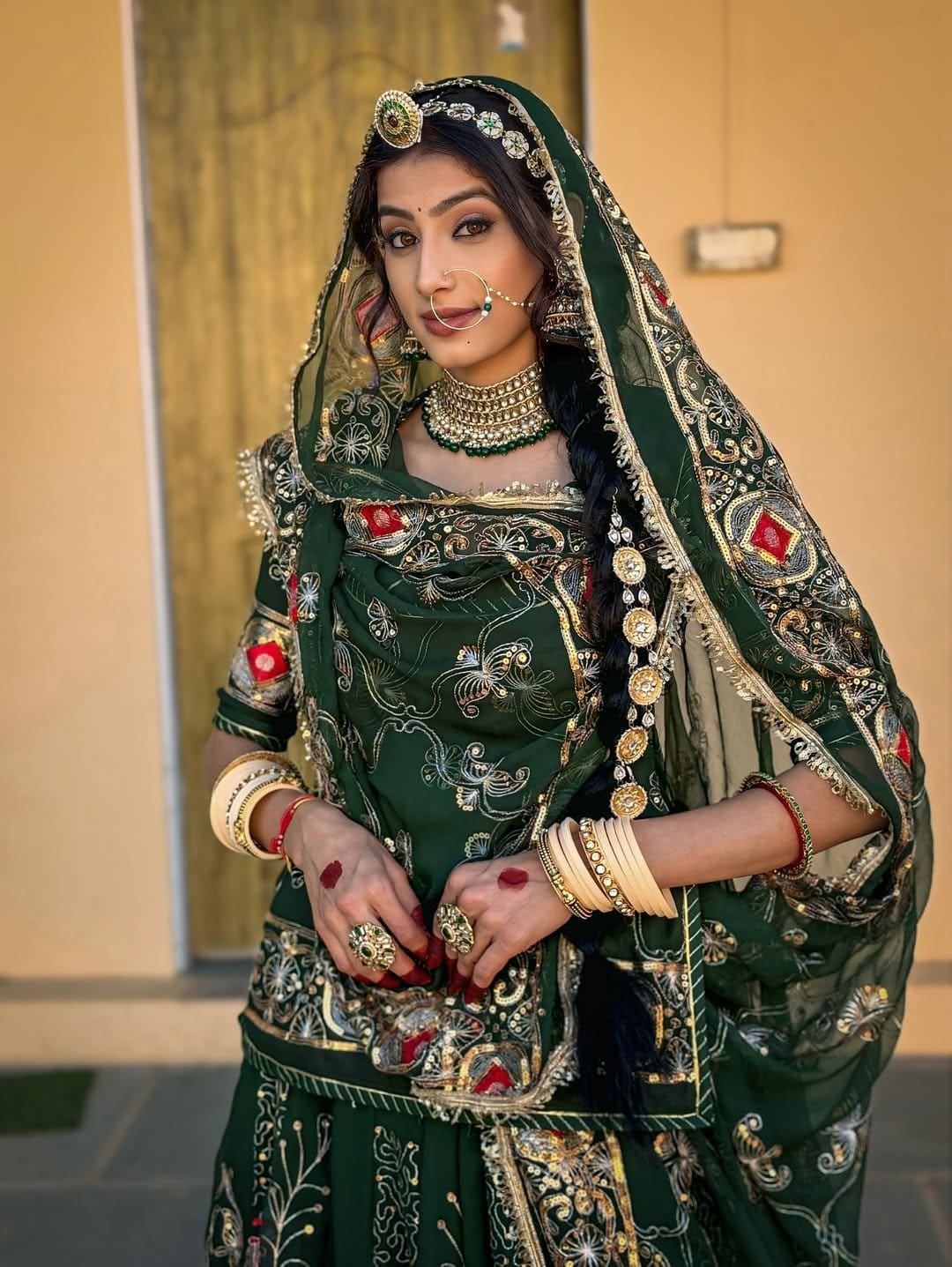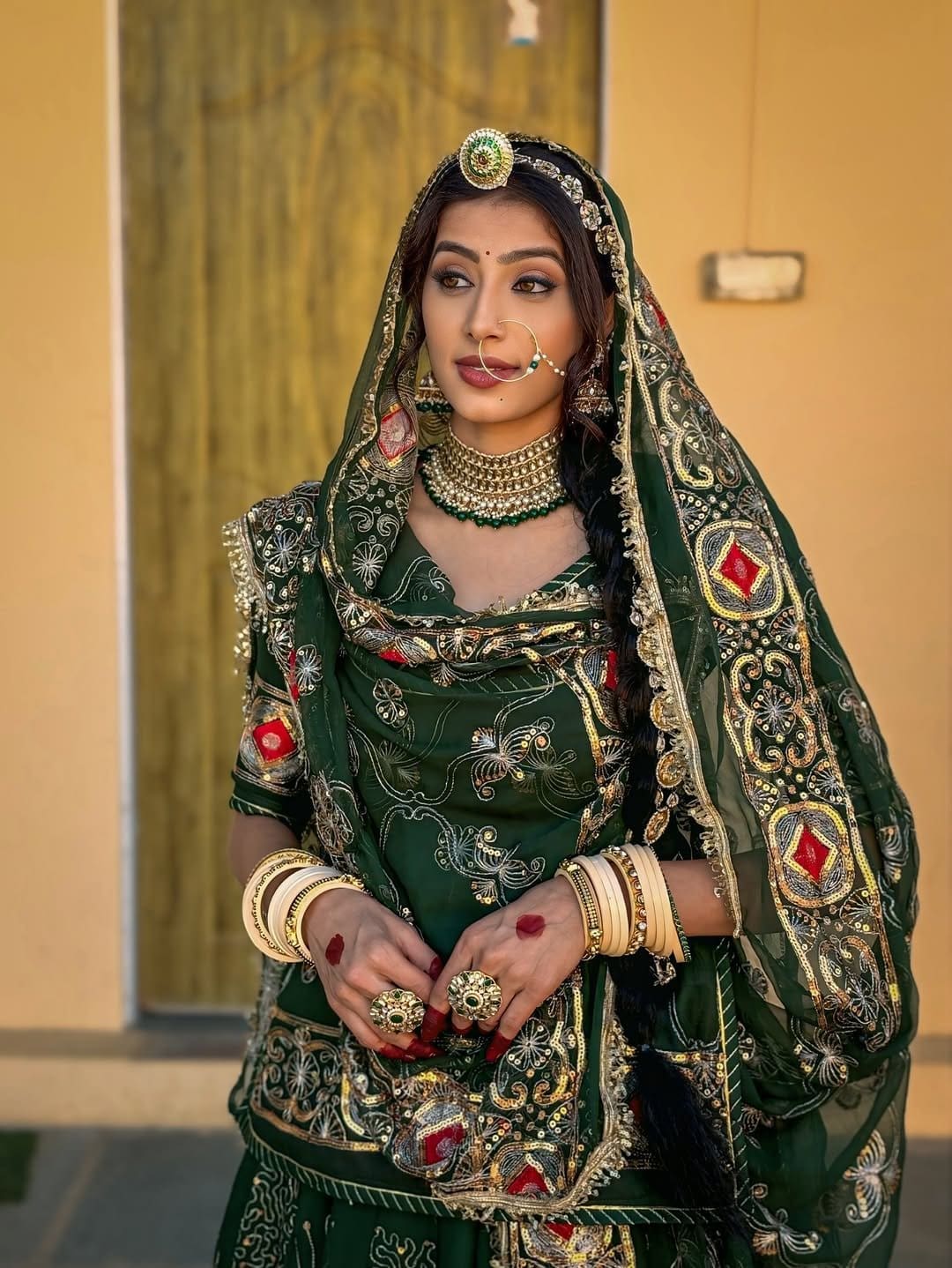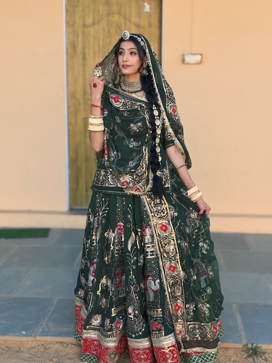 Dark Green Heavy Flair Bridal New Rajputi Poshak