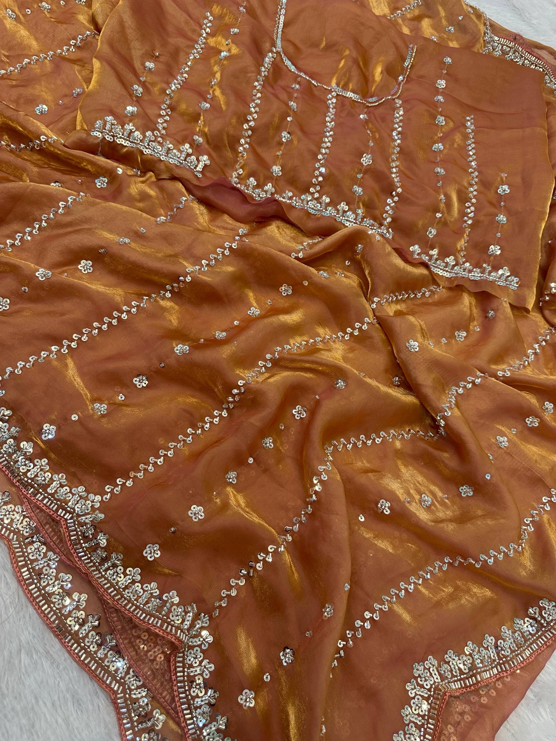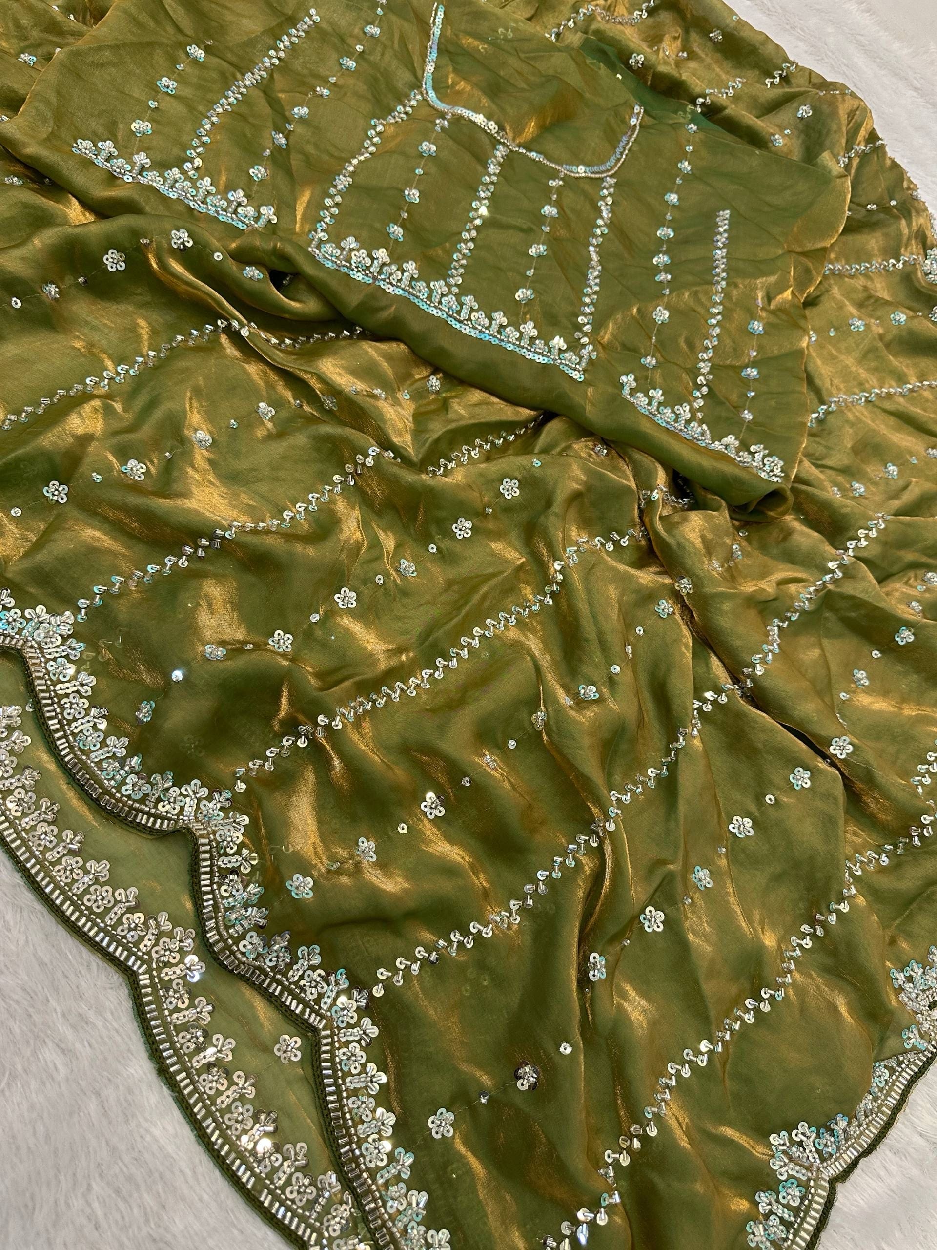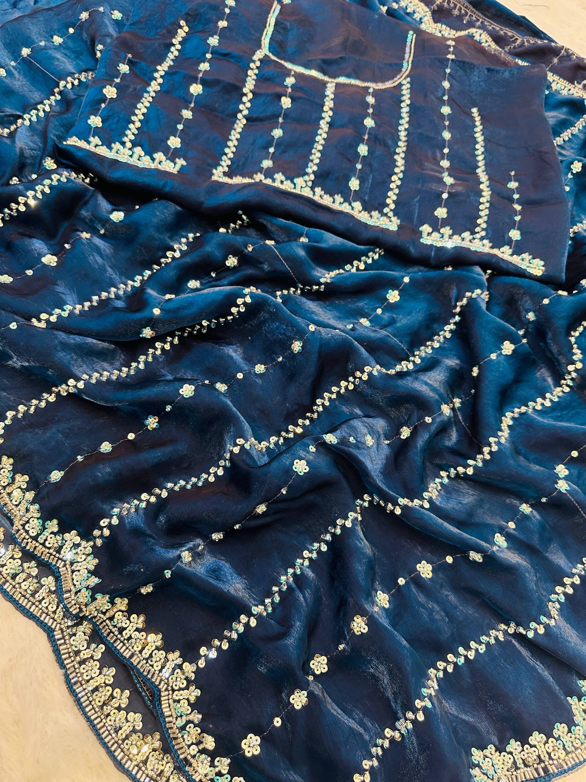 Saree Work : Bidds And Sequins Embroidery Design Work