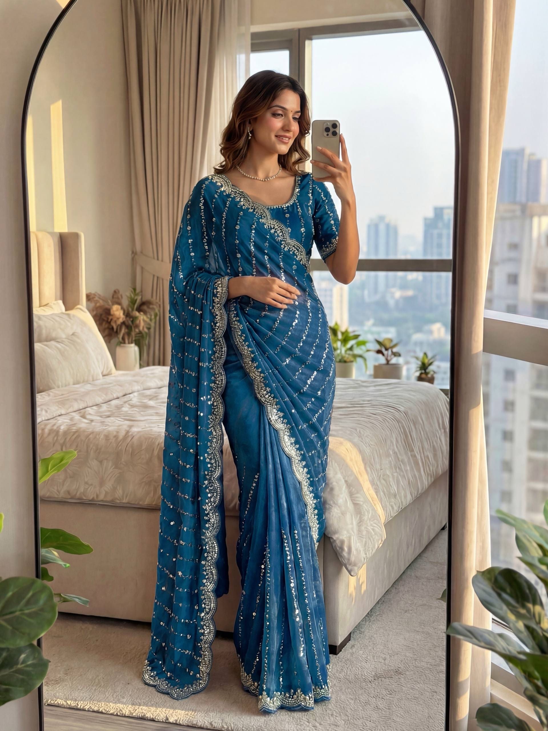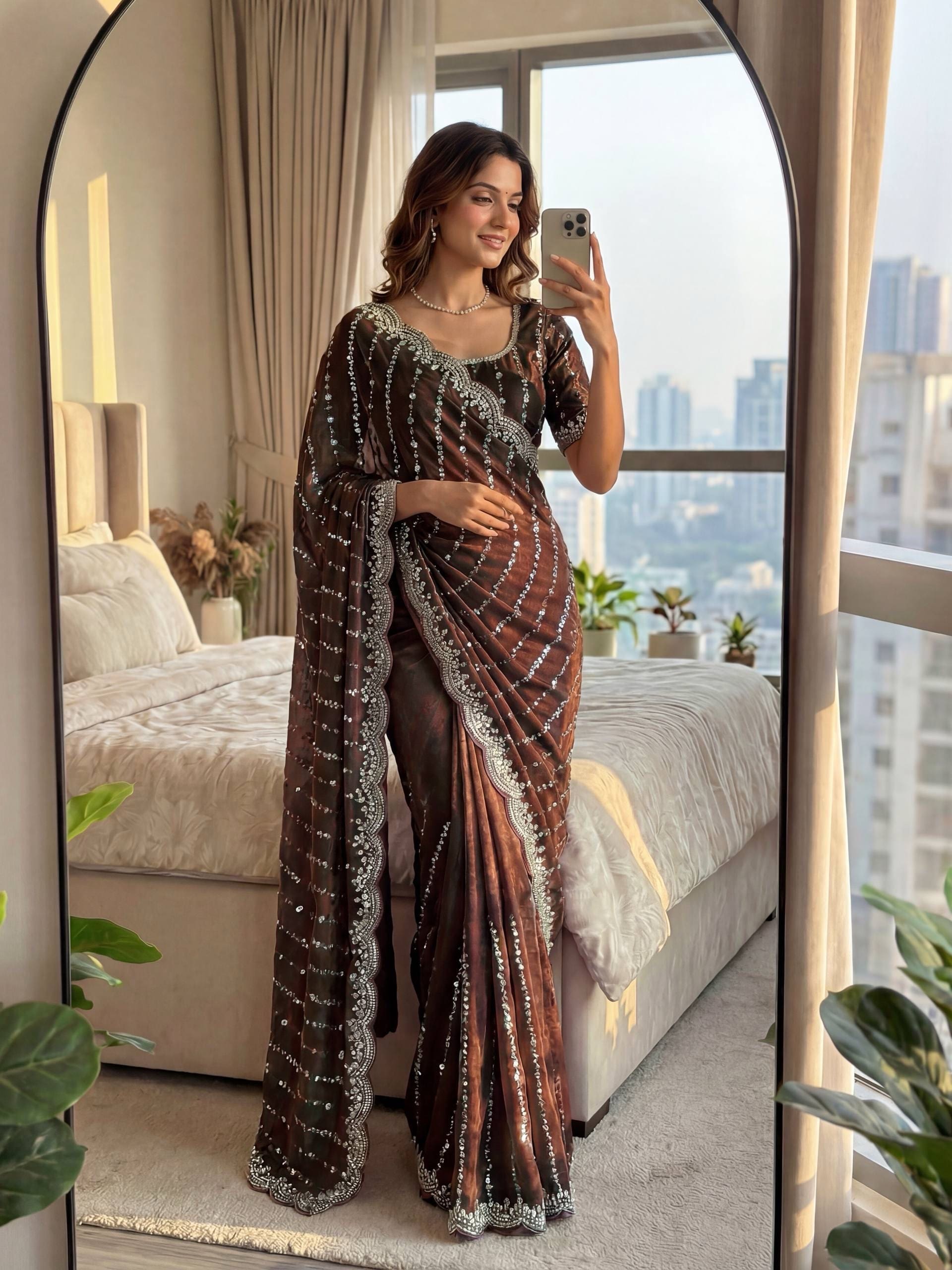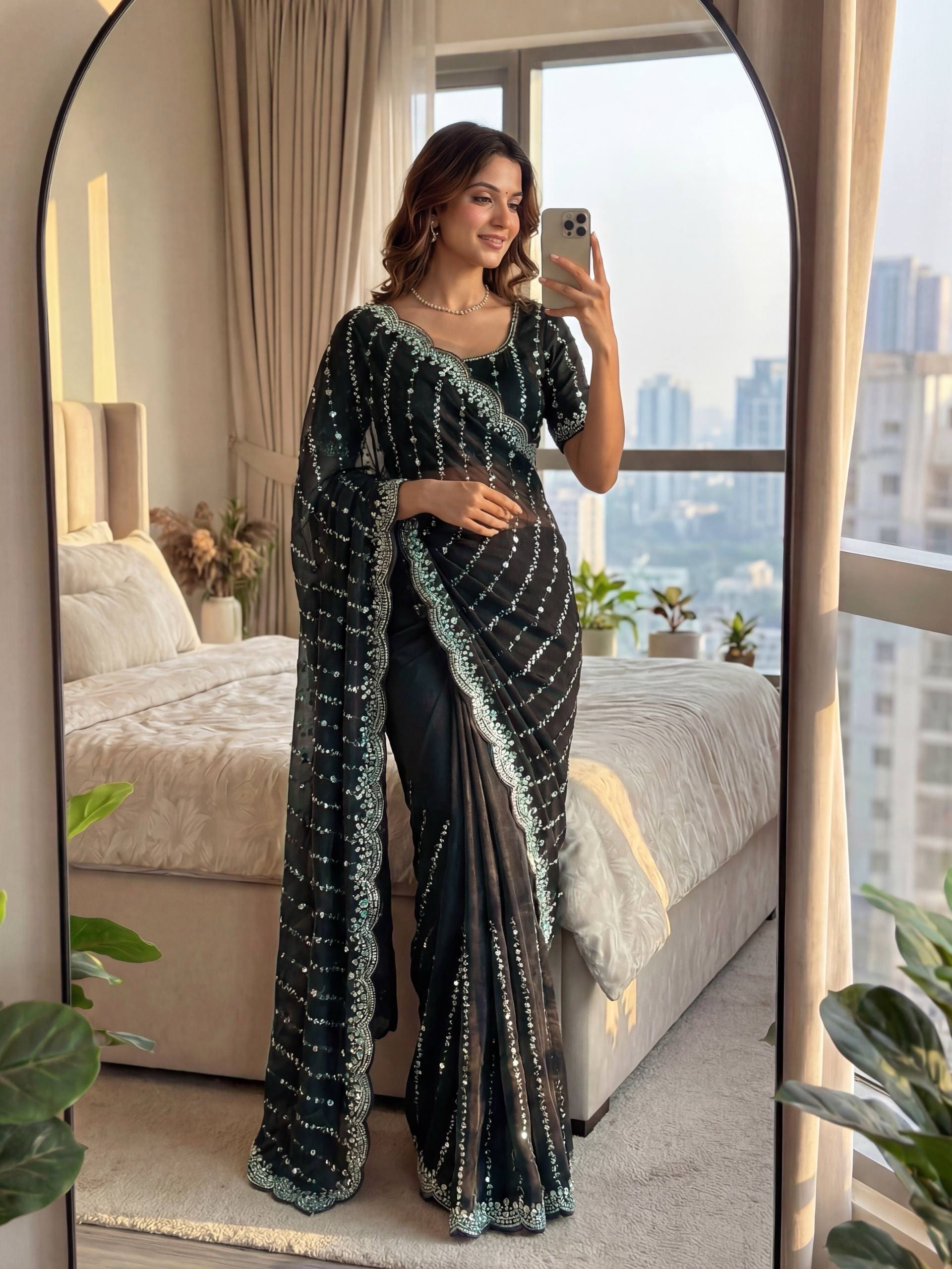 Saree Work : Bidds And Sequins Embroidery Design Work