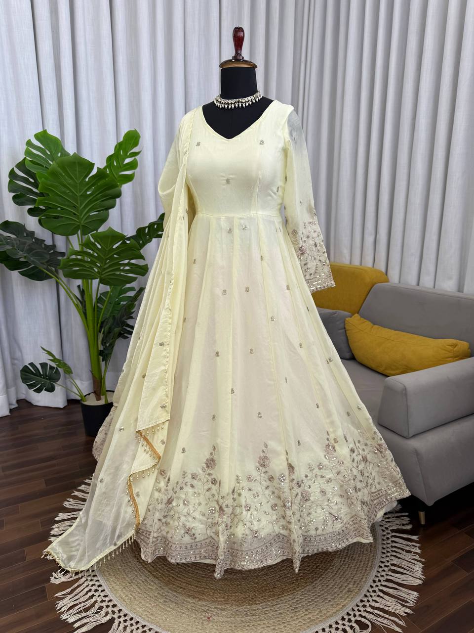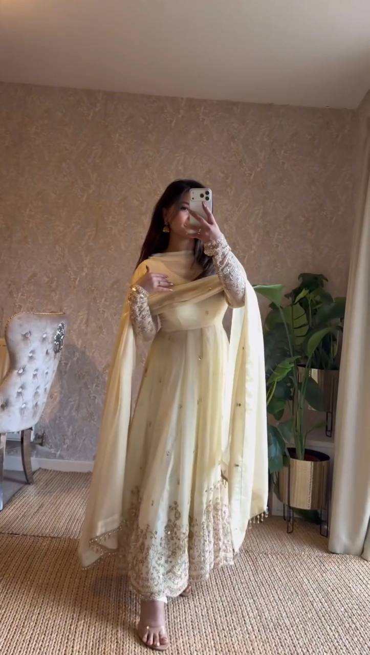 Add royal elegance to your ethnic wardrobe with this stunning RjPoshak Fendy Silk Anarkali Suit Set. Featuring thread and sequin embroidery, a fully stitched pant, and a beautifully bordered dupatta, this 3-piece outfit is perfect for festive wear, parties, and wedding functions.