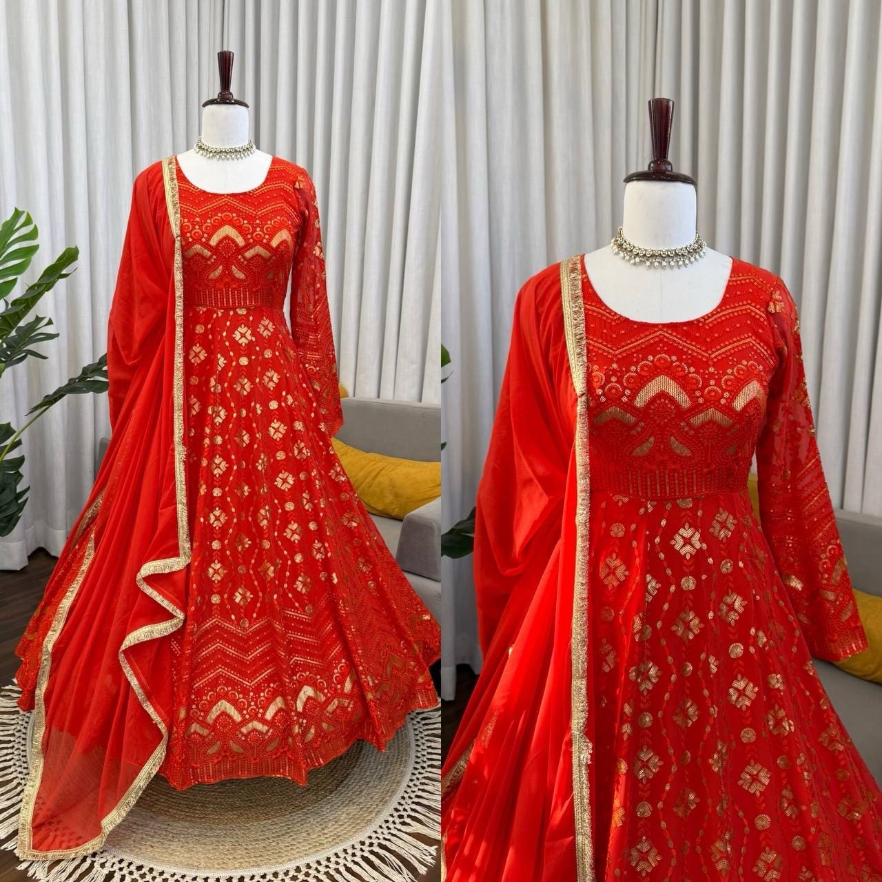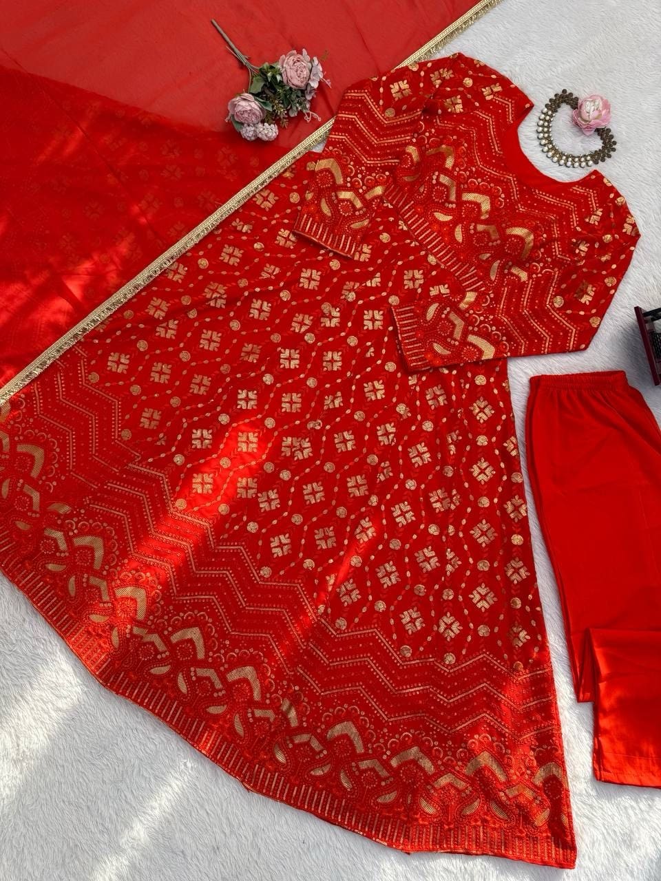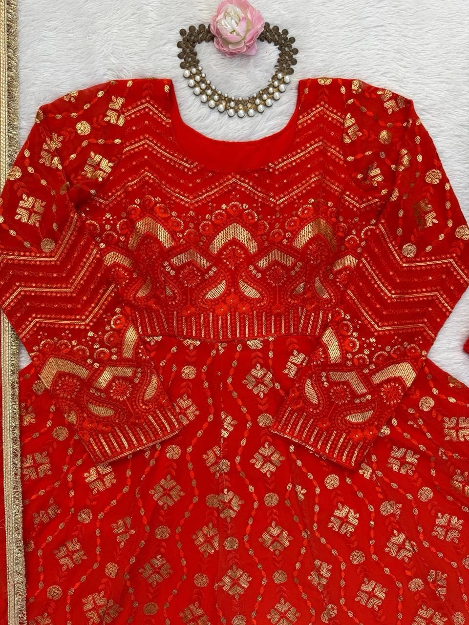 Buy Red Faux Georgette Palazzo with Gown Set in India