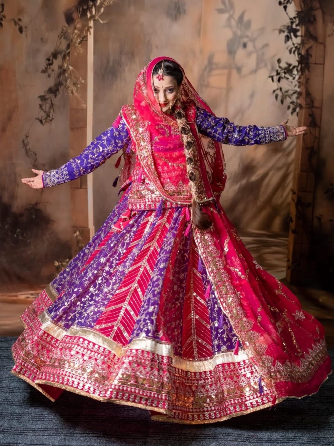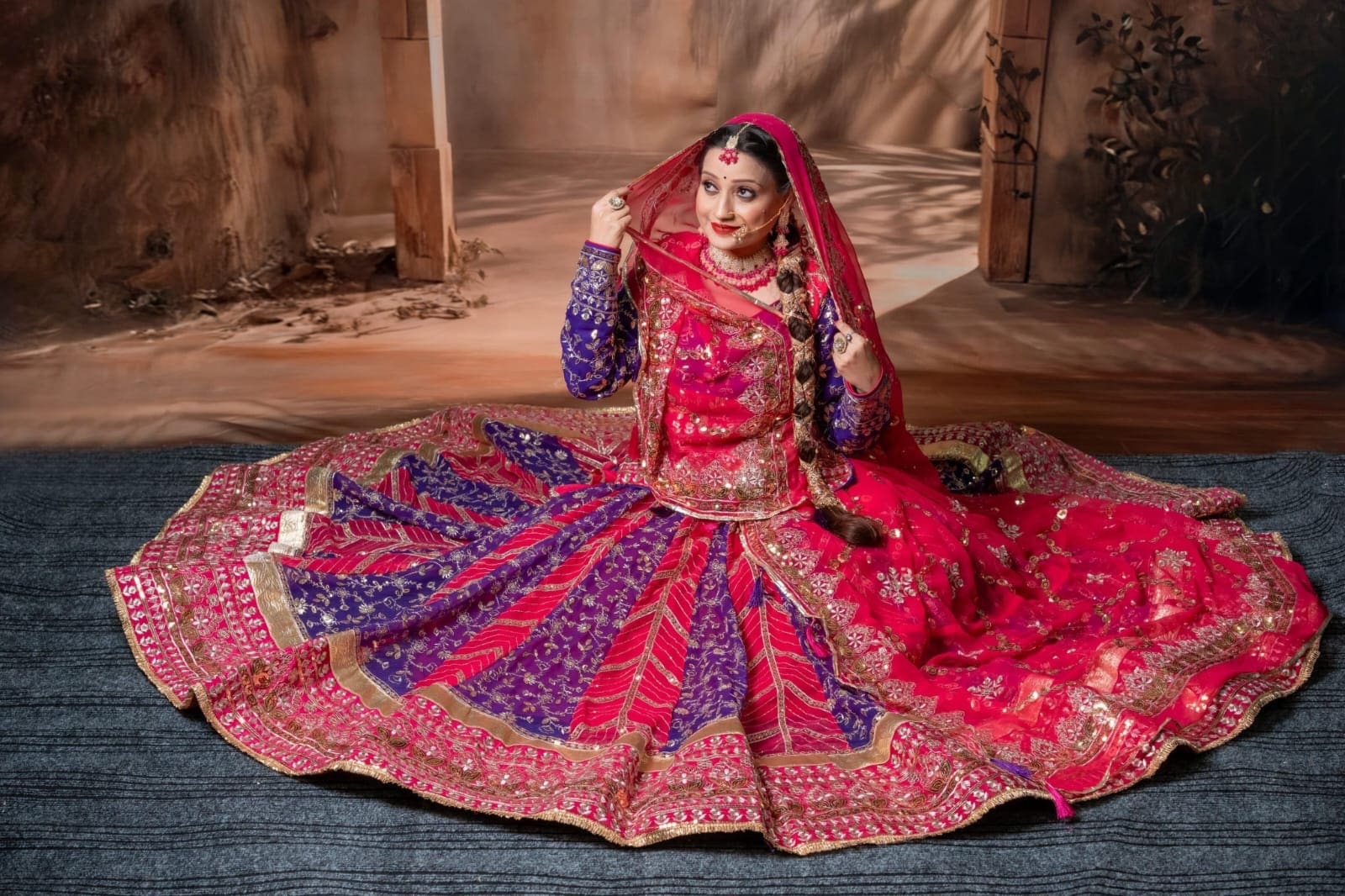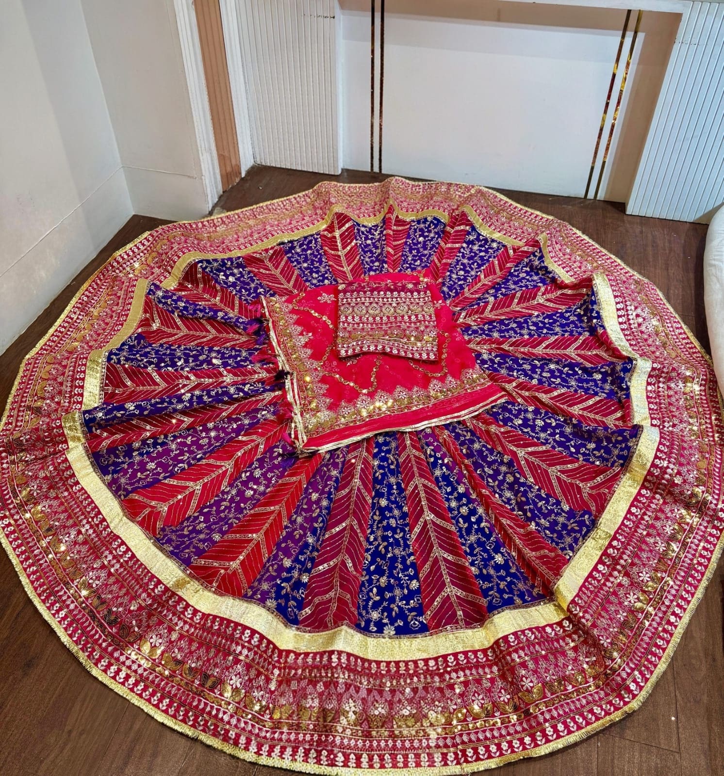 DESIGHNER 5 MTR GHER Lehanga Suit