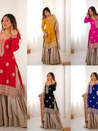 Buy Designer Chinon Silk Sharara Set with Dupatta | RjPoshak