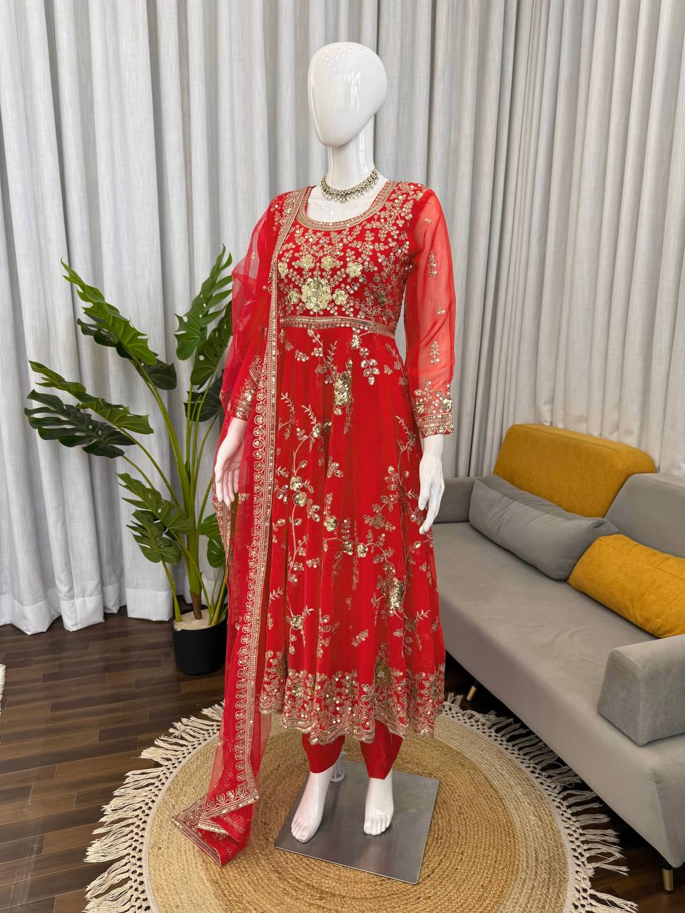 Step into elegance with this stunning Designer Anarkali Set from RjPoshak, designed for women who love a perfect blend of traditional charm and modern style. Crafted in heavy faux georgette, this outfit offers a graceful fall with a rich embroidered finish. Style Code:-*KD1598*