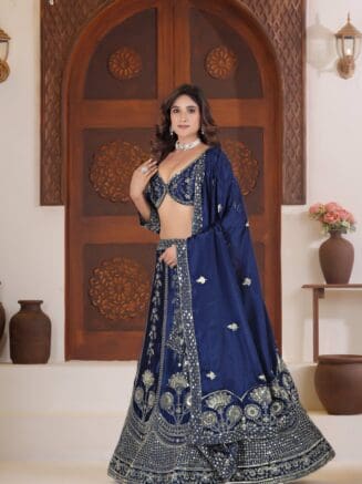 The 3.5-meter grand flair lehenga gives a regal silhouette, while the embroidered choli and stylish koti add richness and sophistication — making it an ideal choice for weddings, sangeet nights, receptions, festive gatherings, and special occasions. Product Code: *SP-67*