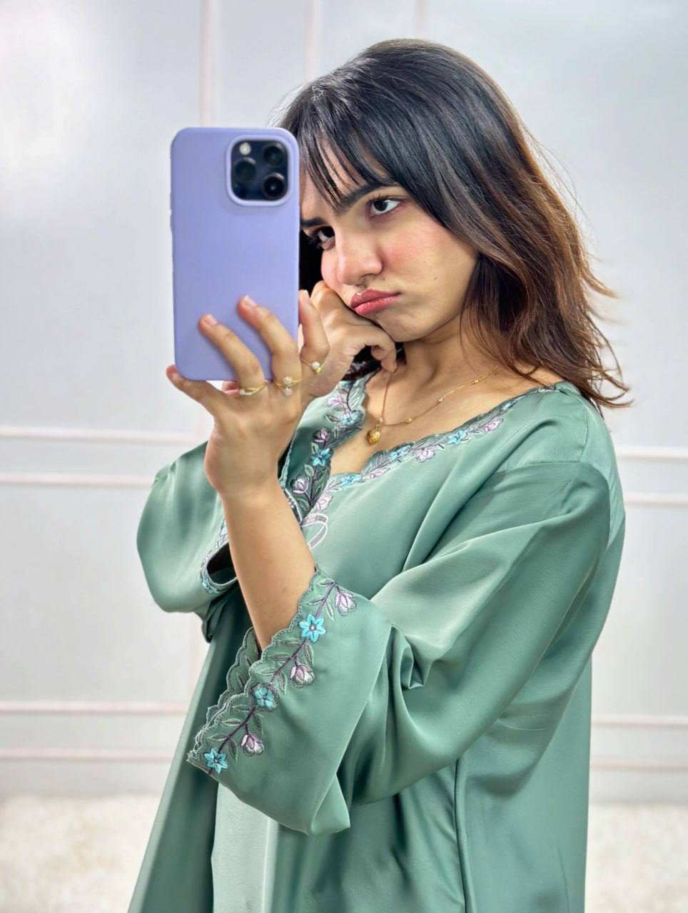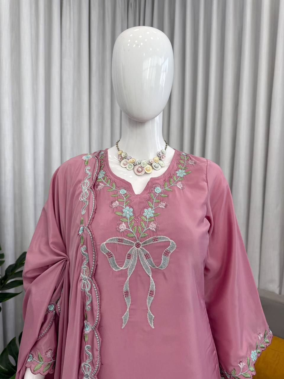 Subtle embroidery enhances the graceful ethnic look.