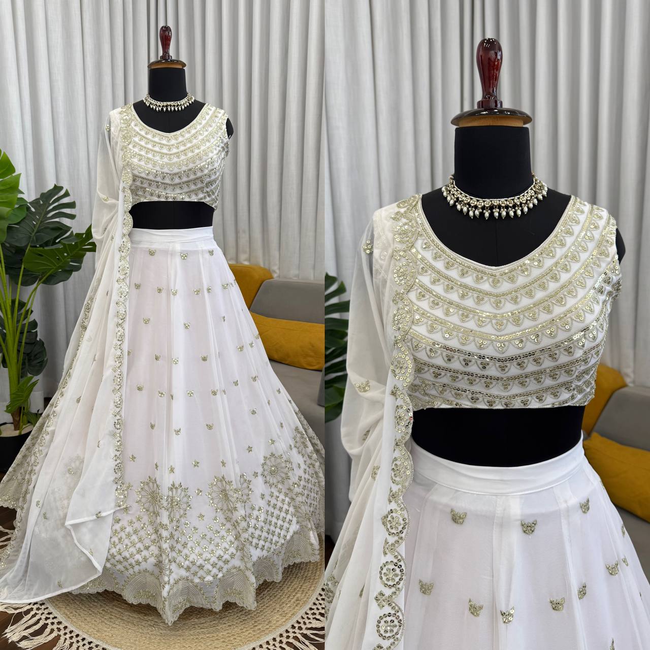 Shop this premium designer georgette lehenga choli set from RjPoshak featuring 4 meter flare with sequins embroidery and dupatta. Perfect for weddings, parties and festive occasions.