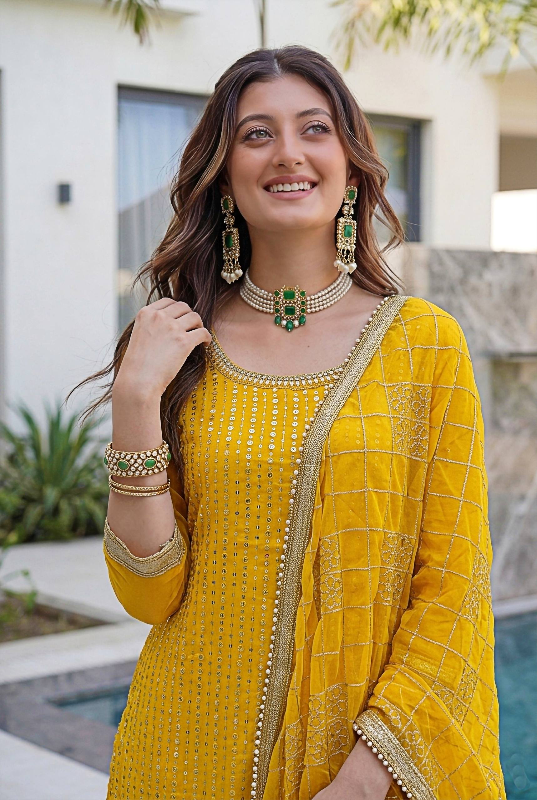 Perfect for festive celebrations, wedding functions, sangeet, parties and traditional events, this outfit from RjPoshak offers boutique-style fashion with comfort and affordability. DVD ON 5065