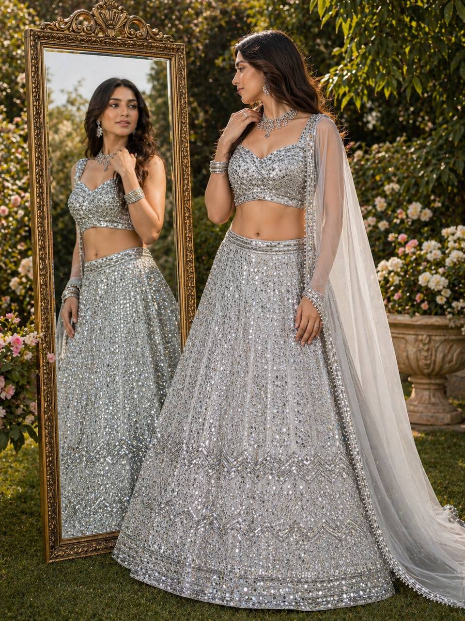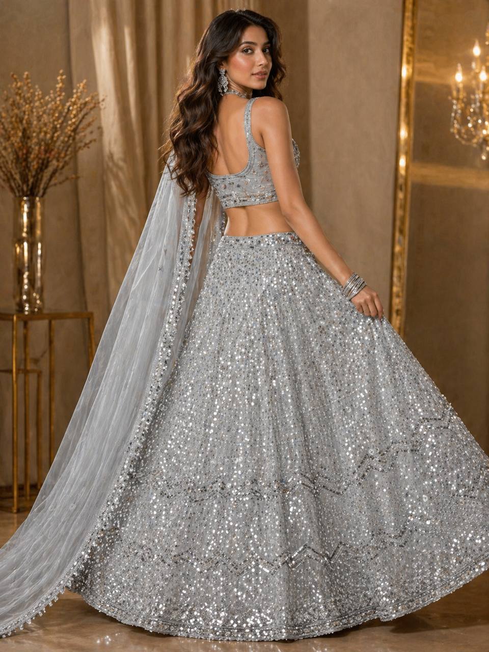 Faux Georgette Lehenga with Sequins Work I RjPoshak