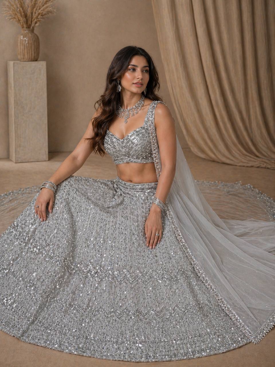 Upgrade your festive wardrobe with this elegant RjPoshak Faux Georgette Lehenga featuring beautiful sequins embroidery work. Designed with a 3.5-meter flare and layered with can-can and canvas, it offers a perfect blend of glamour, volume, and comfort. Ideal for weddings, parties, and special occasions.