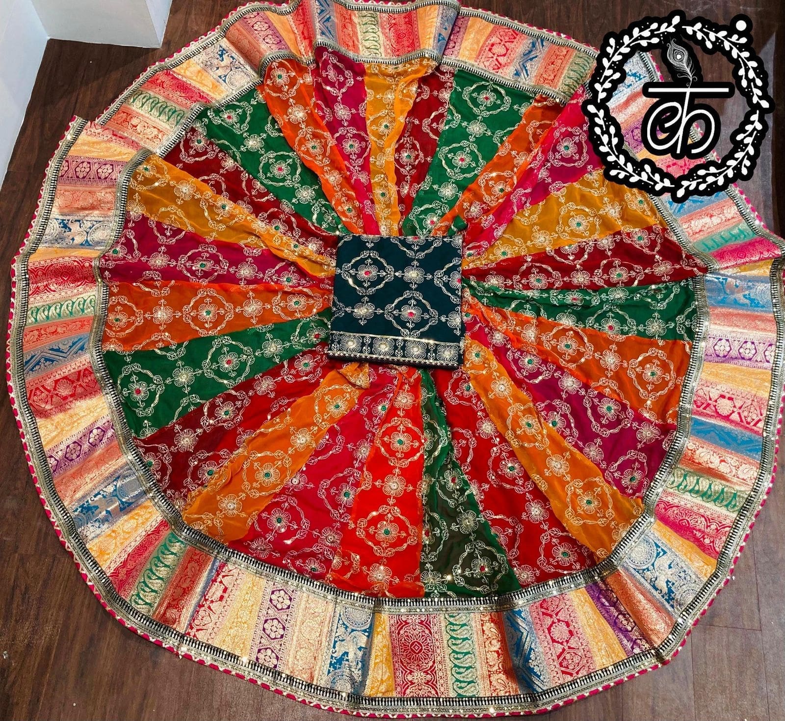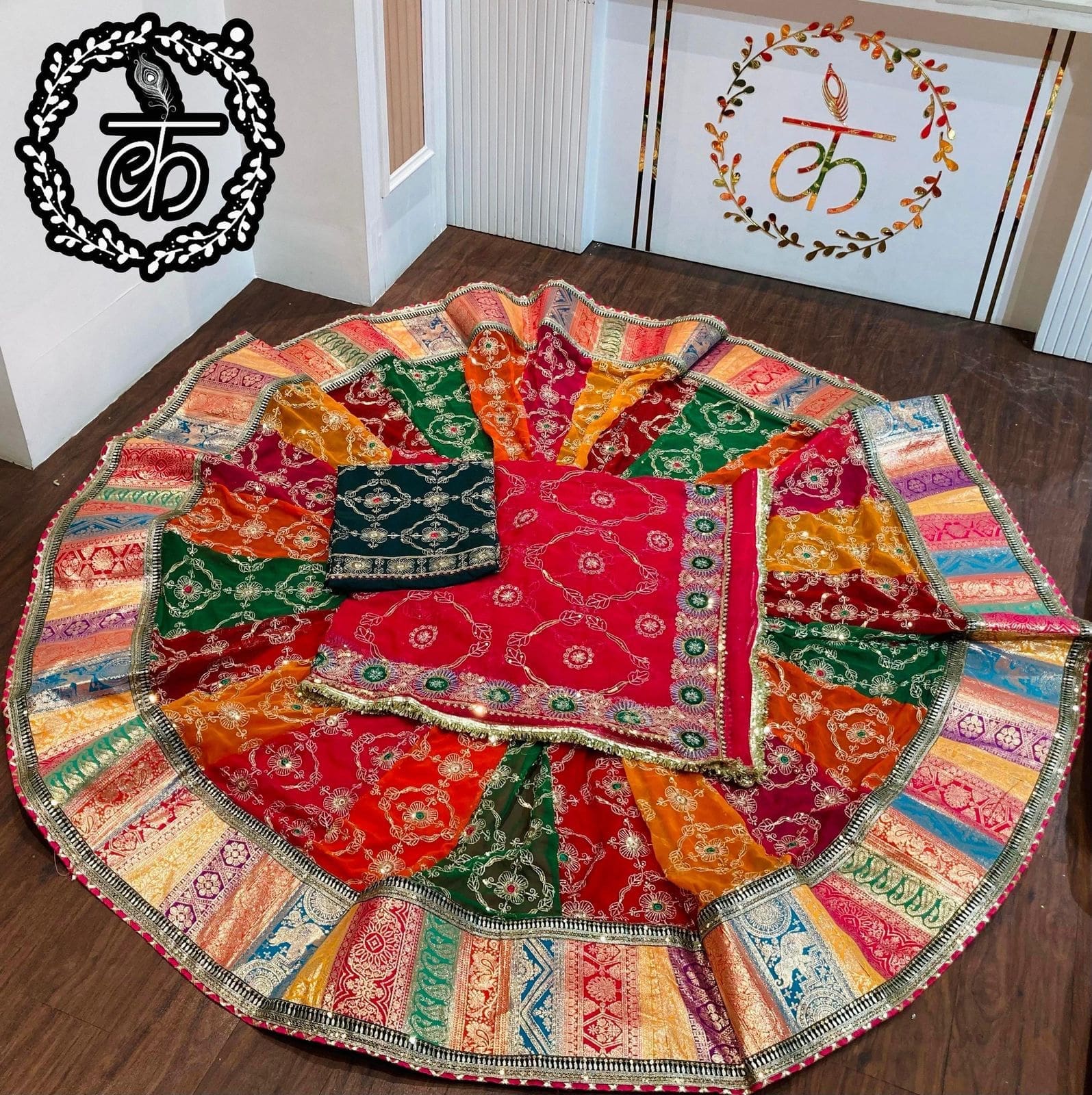 Bridal Rajputi Poshak, also known as Rajputana Poshak or Rajasthani Poshak, is a vibrant and elegant traditional attire primarily worn by Rajput women in Rajasthan, India and Out side country. This poshak have Multi Colour Kali and Beautiful Sequence Work Jari work, Resham Work.