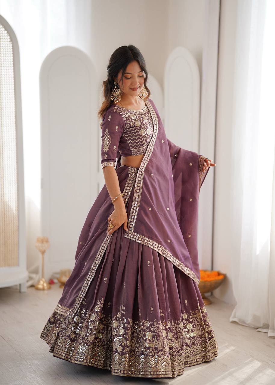Step into elegance with this beautifully crafted Heavy Shimmer Silk Lehenga Choli Set from RjPoshak, designed for women who love a perfect blend of tradition and modern style. This premium outfit features intricate thread embroidery with delicate sequence work, giving it a luxurious and festive appeal.