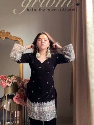 Black sharara set for womens featuring a comfortable fit and elegant design, suitable for festive wear, casual outings, and special occasions.