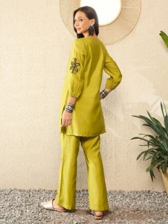 festive kurta sets​ for women made with tabby silk and vichitra silk