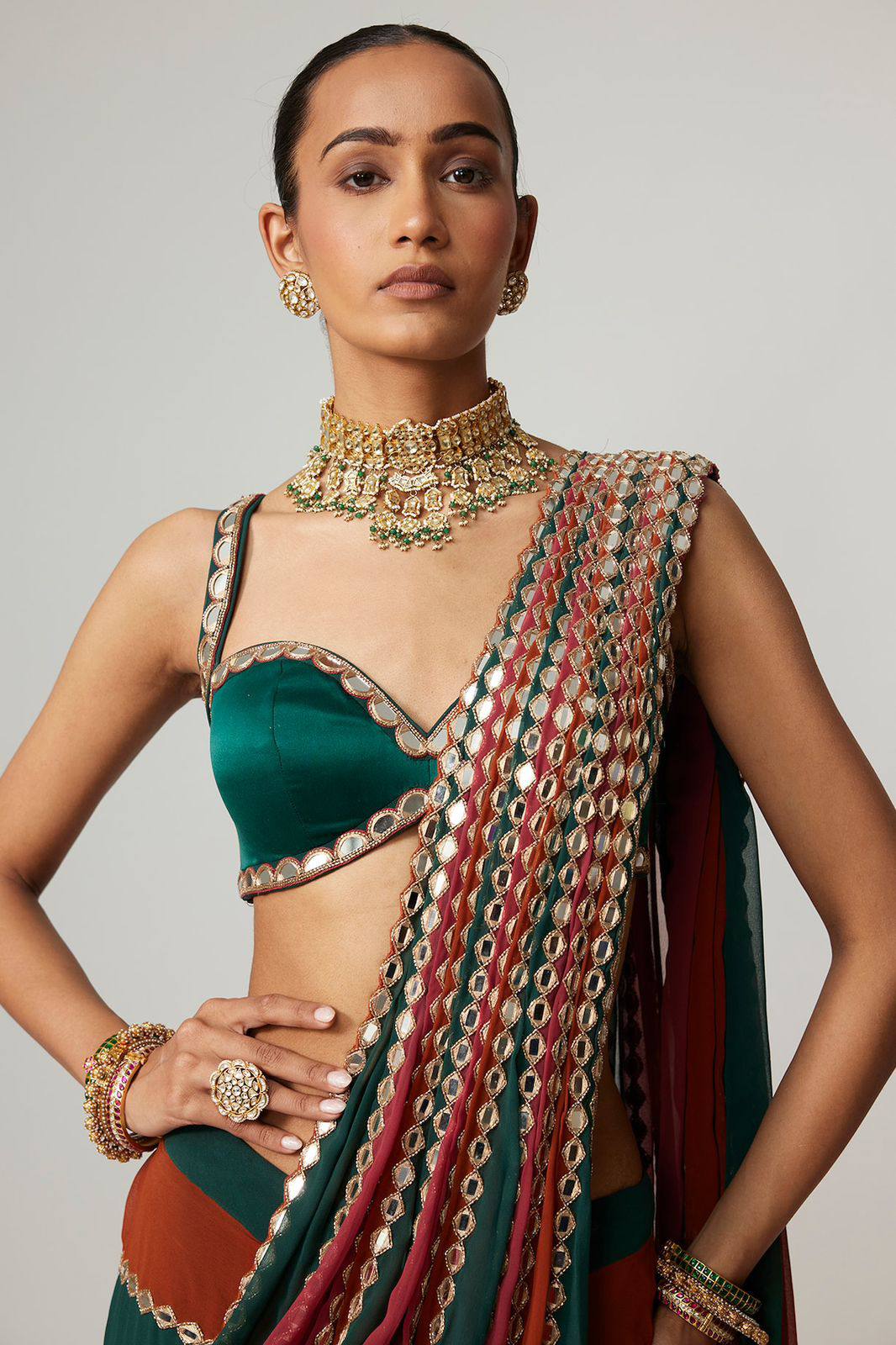 Multicolor Mirror Work Faux Georgette Saree with Blouse | RjPoshak