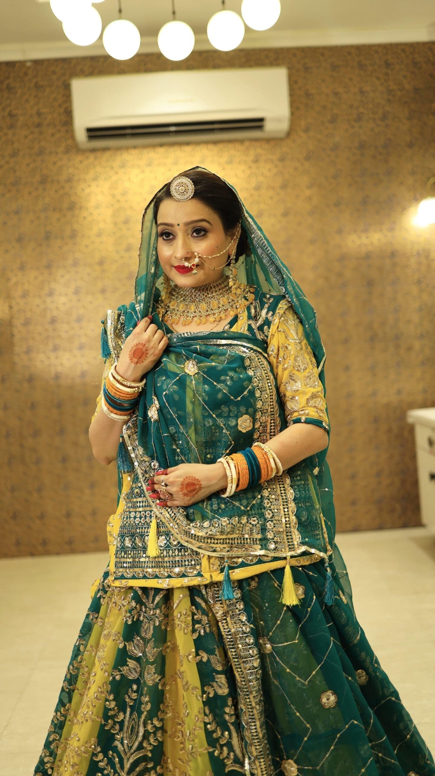 The Rajputi Poshak, also known as Rajputana Poshak or Rajasthani Poshak, is a vibrant and elegant traditional attire primarily worn by Rajput women in Rajasthan, India and Out side country. This poshak have Multi Colour Kali and Beautiful Sequence Work Jari work, Resham Work.