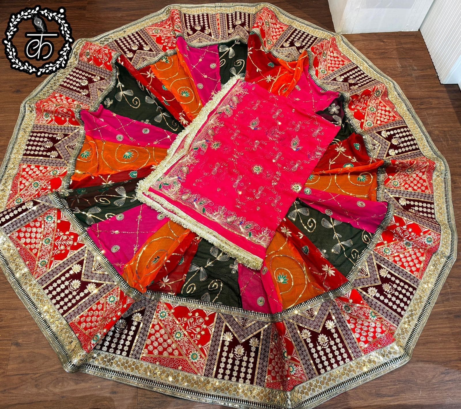 The New Wedding Poshak, also known as Rajputana Poshak or Rajasthani Poshak, is a vibrant and elegant traditional attire primarily worn by Rajput women in Rajasthan, India and Out side country. This poshak have Multi Colour Kali and Beautiful Sequence Work Jari work, Resham Work.