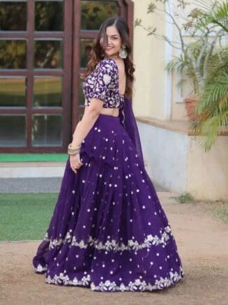 The matching lehenga is fully stitched and designed for comfort with soft micro cotton lining, ensuring ease of movement while maintaining a graceful silhouette. Completing the look is a matching dupatta with elegant embroidery, adding charm and sophistication to the overall outfit.