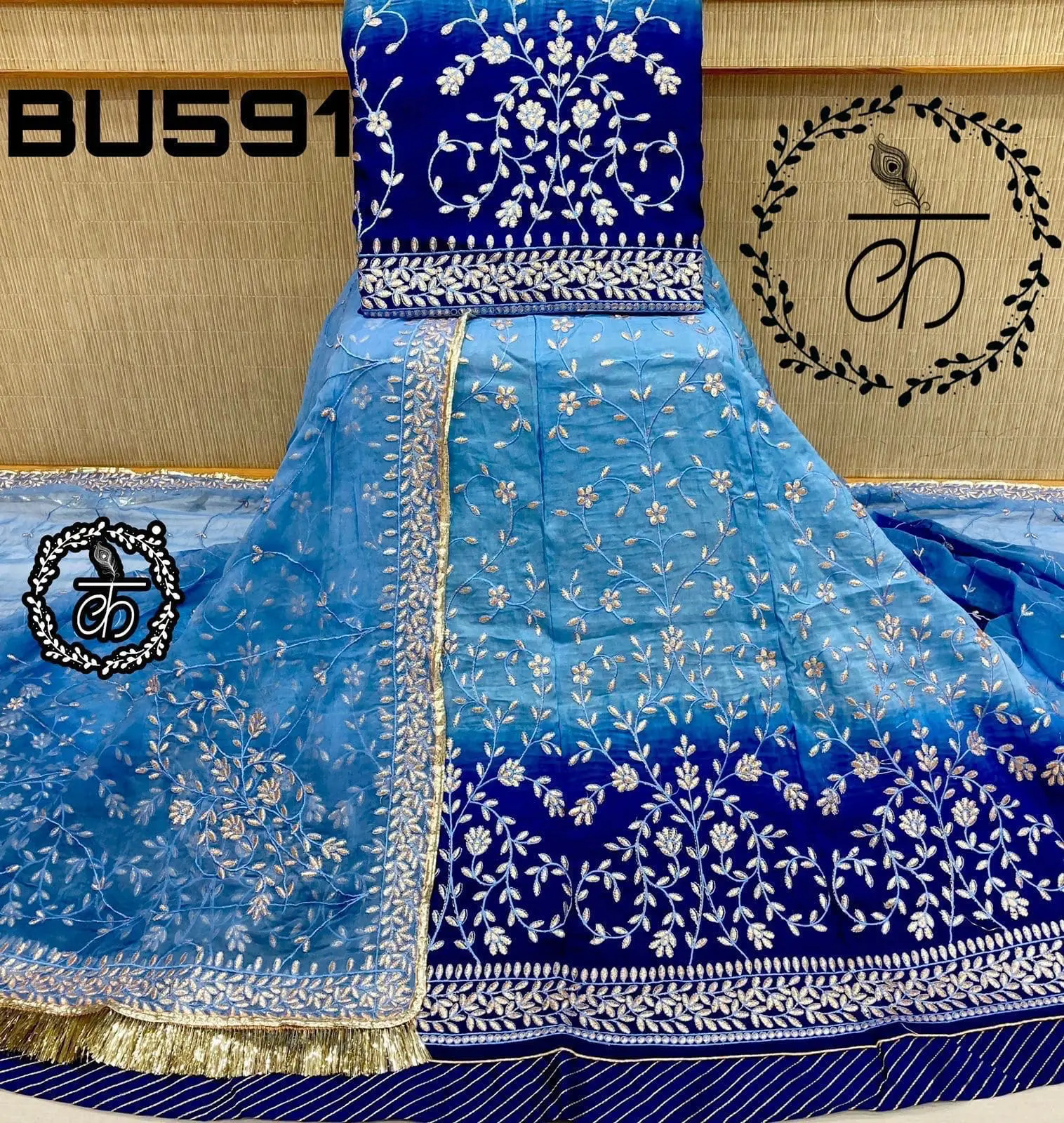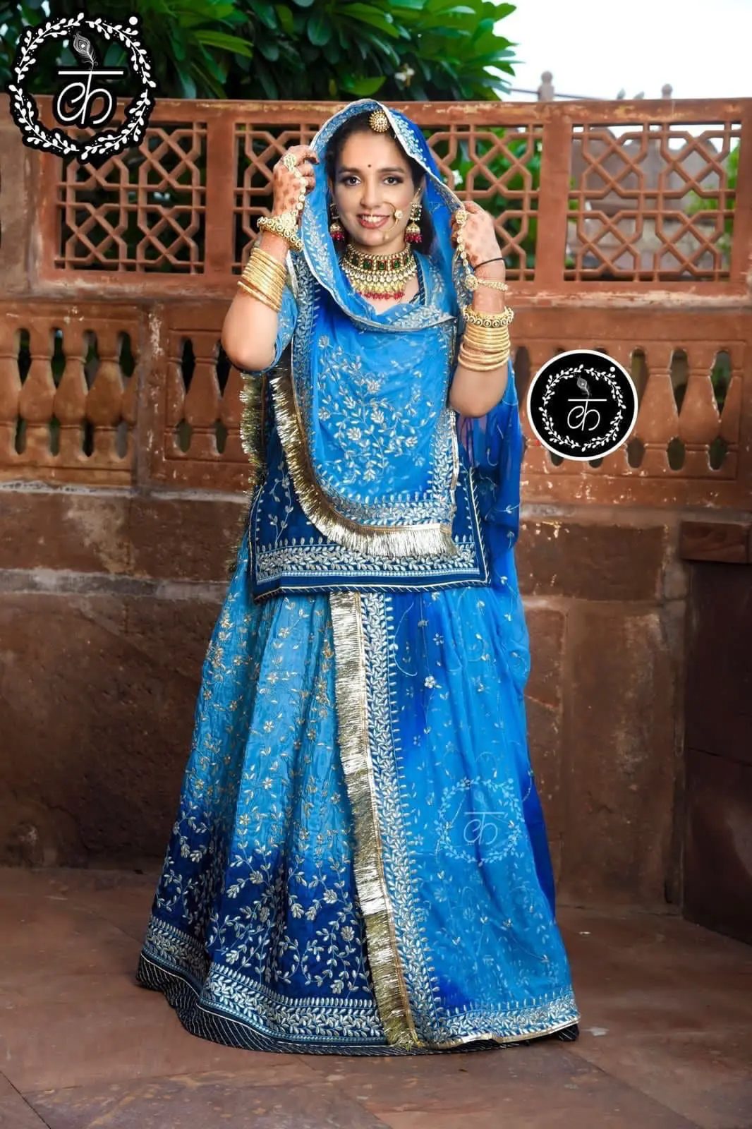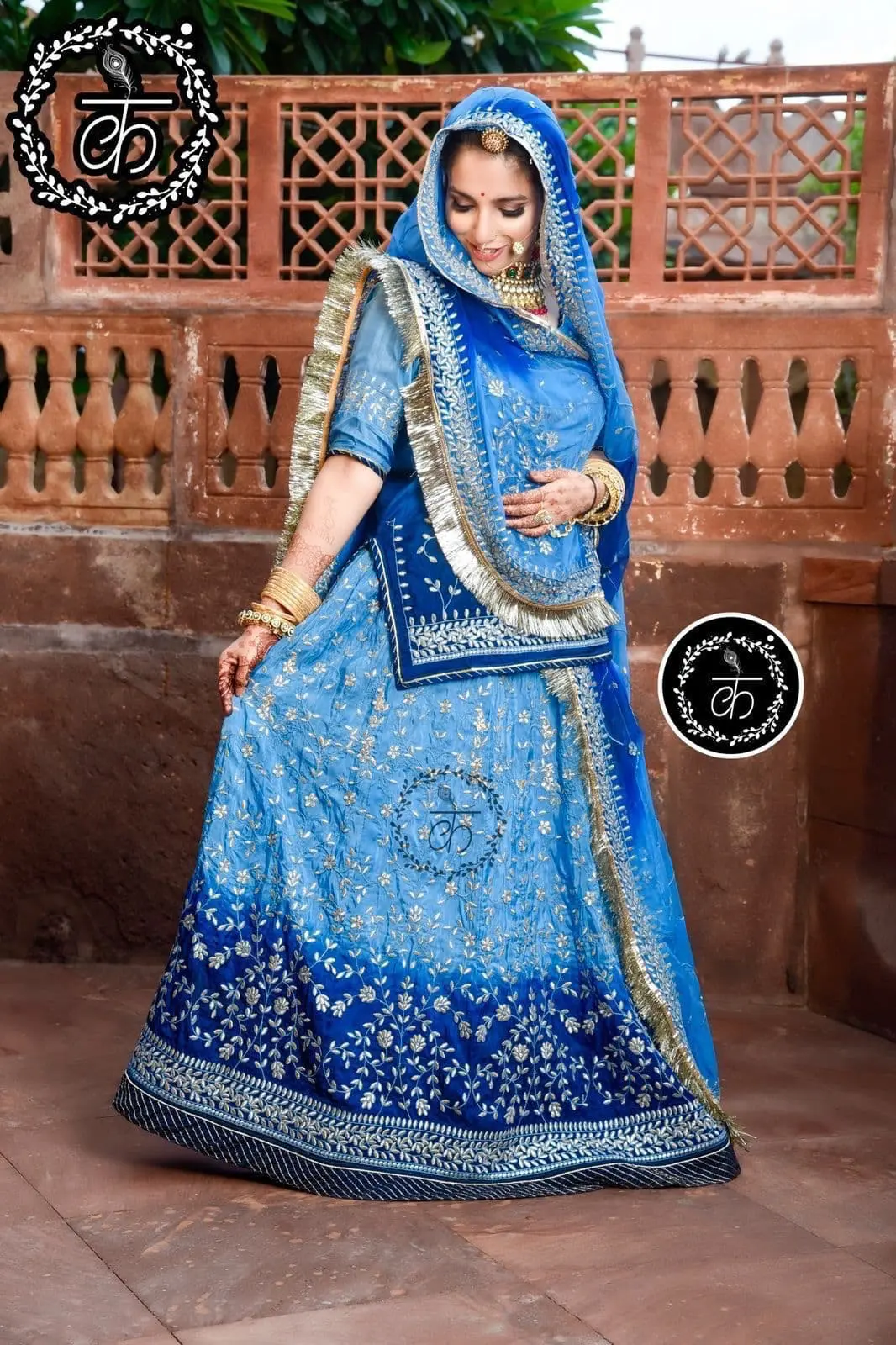 Double Shaded Blue Colour Crep Rajputi Poshak