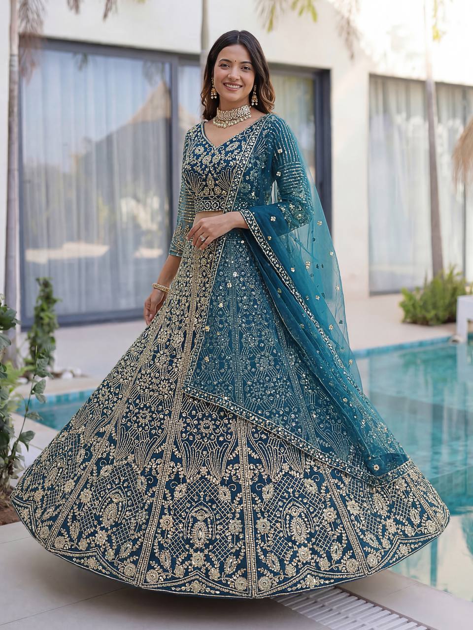 Available in multiple color options, this lehenga is ideal for weddings, receptions, festive occasions, and party wear, making it a must-have addition to your ethnic wardrobe.