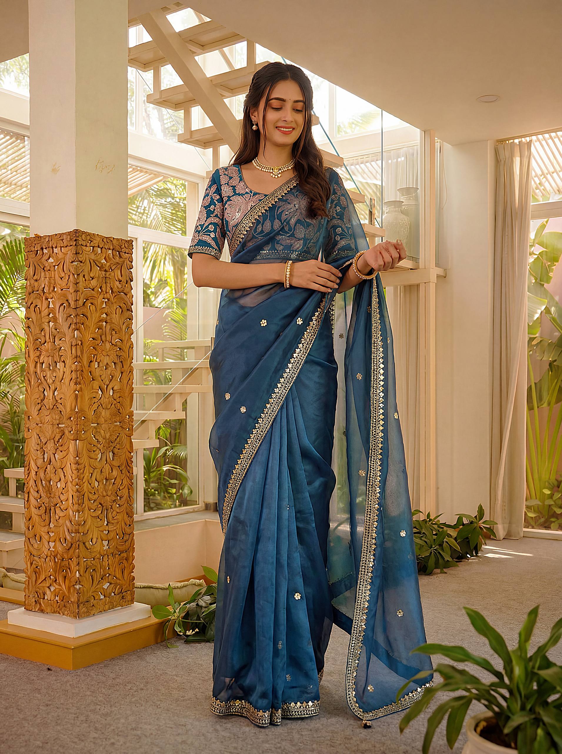 Designer Satin Silk Saree – Sequins Embroidered Party Wear Saree with Banglori Blouse RjPoshak