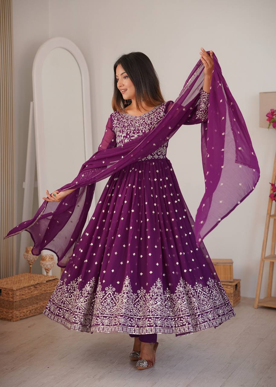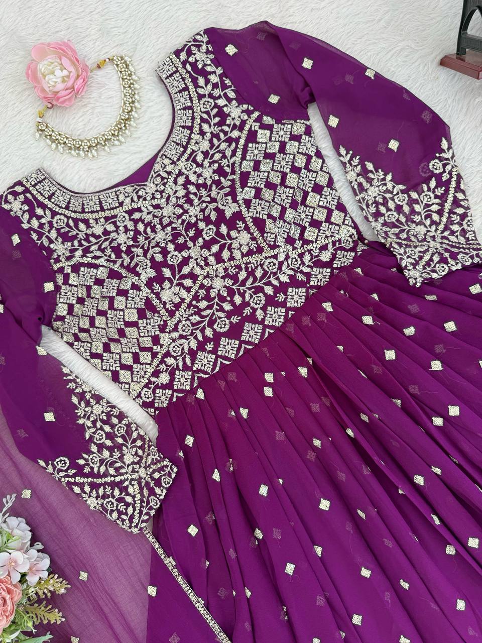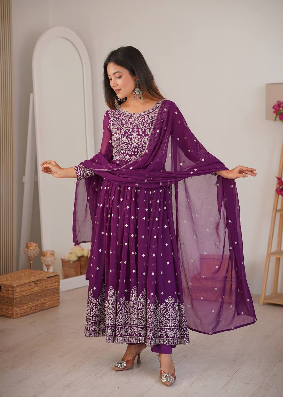 Step into elegance with this RjPoshak Designer Anarkali Set, crafted in heavy faux georgette with beautiful thread & sequin embroidery. Perfect for festive wear, parties, and special occasions with a graceful flow and premium finish.