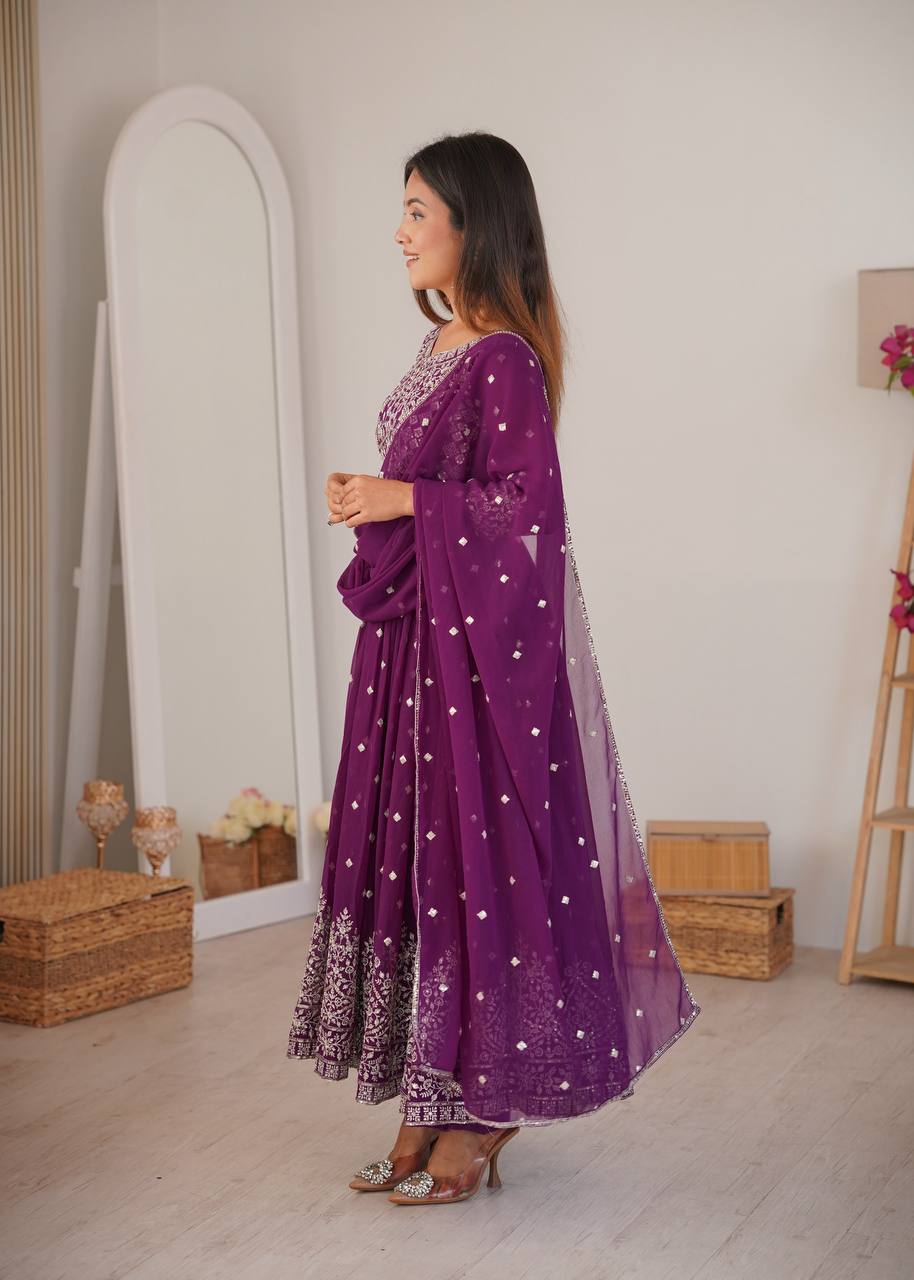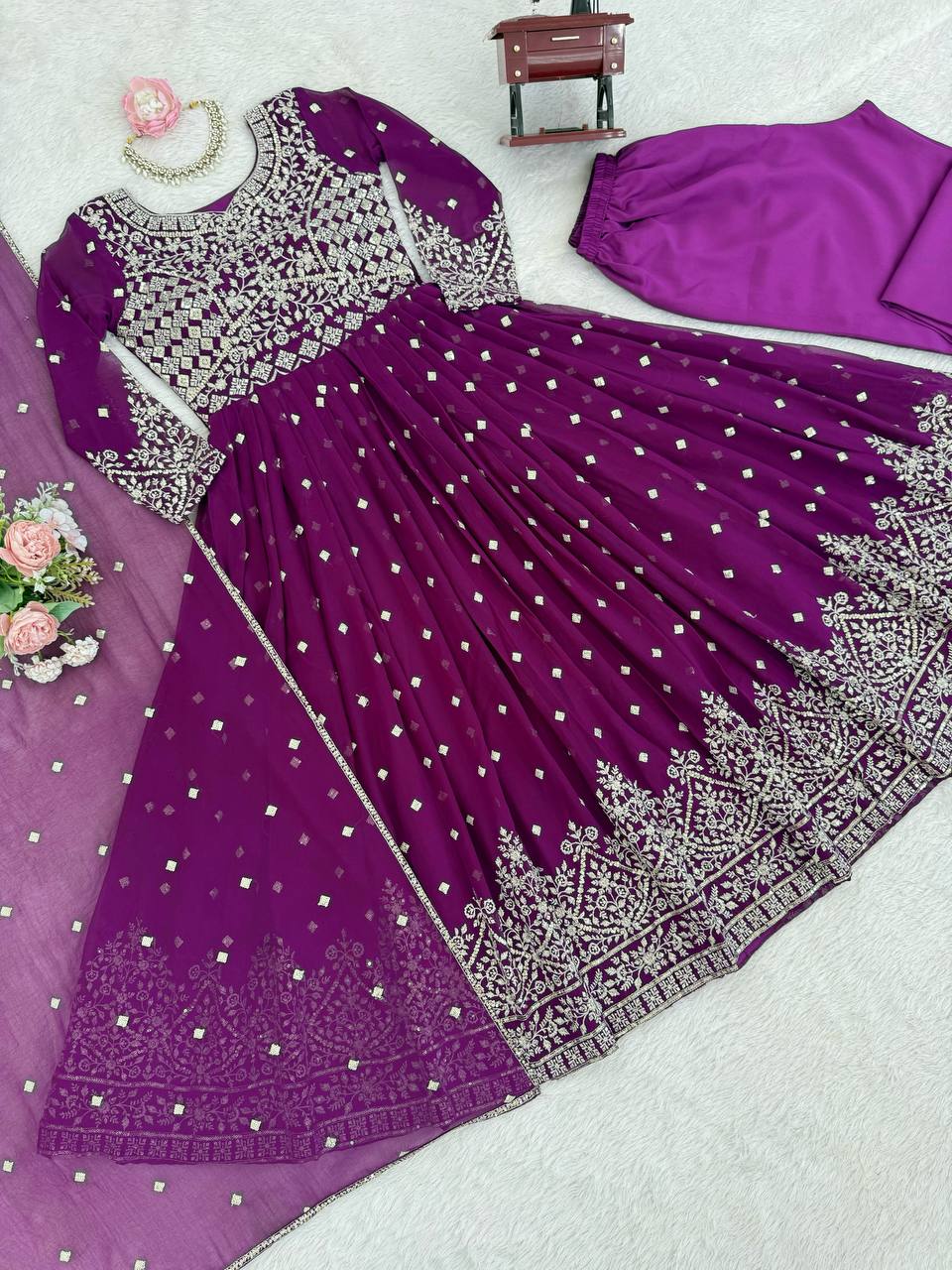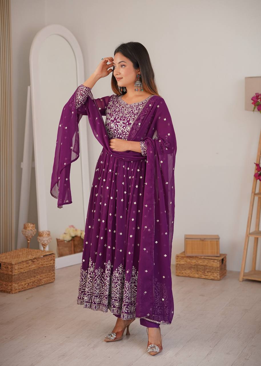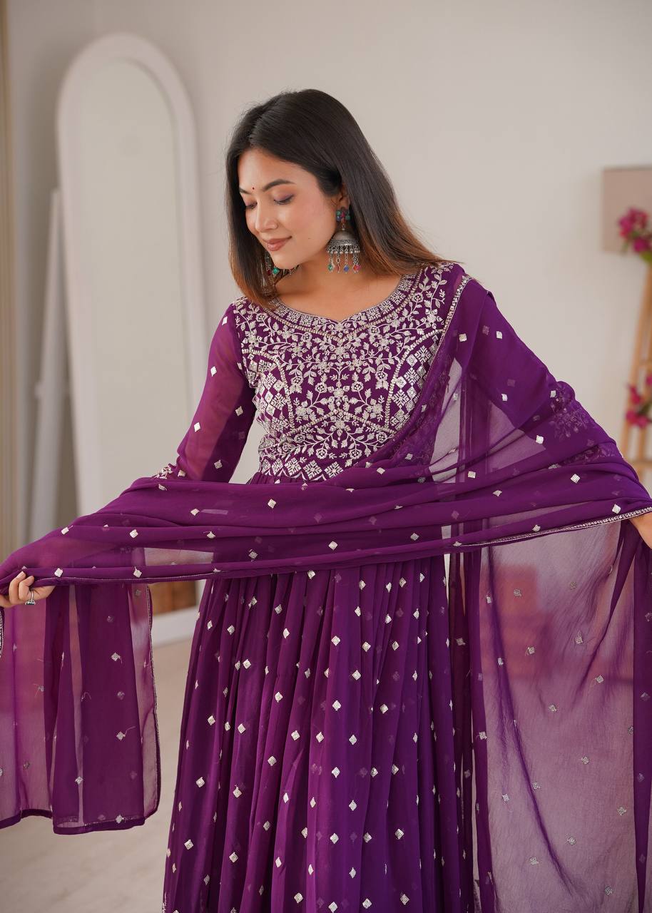Step into elegance with this RjPoshak Designer Anarkali Set, crafted in heavy faux georgette with beautiful thread & sequin embroidery. Perfect for festive wear, parties, and special occasions with a graceful flow and premium finish.