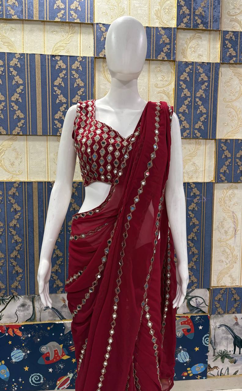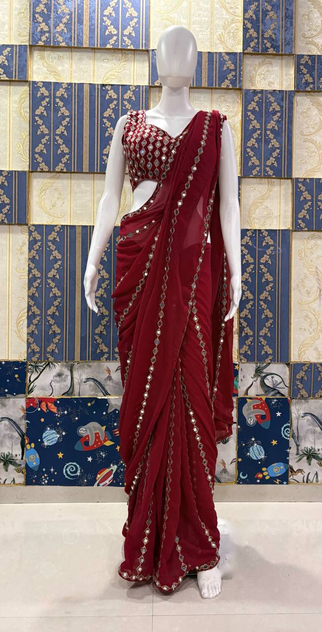 RjPoshak Mirror Work Saree in Faux Georgette