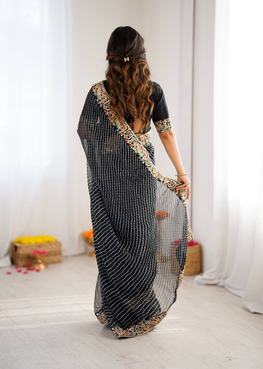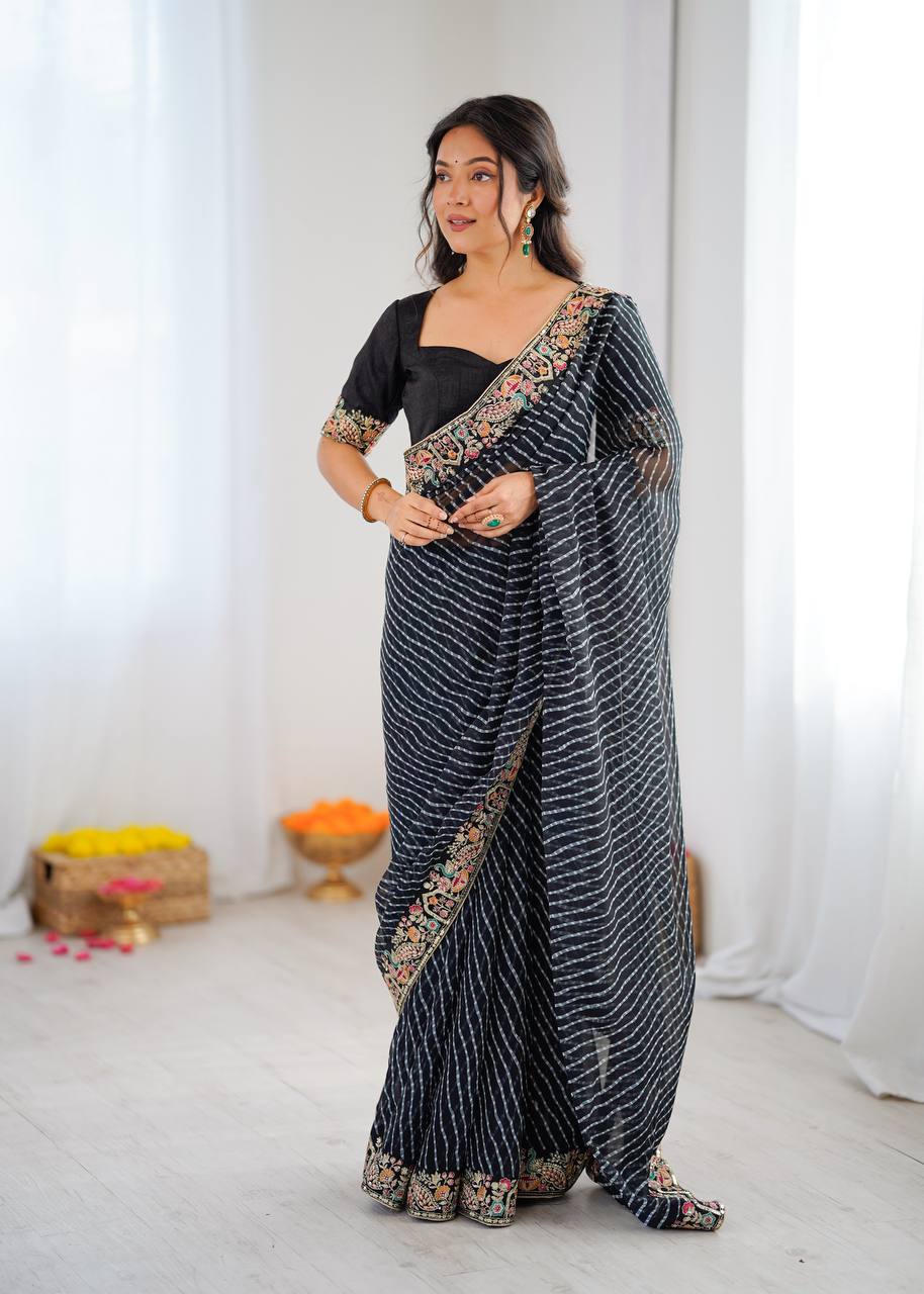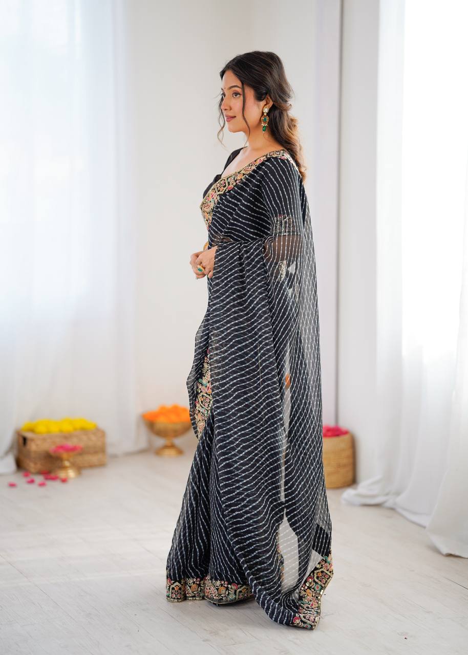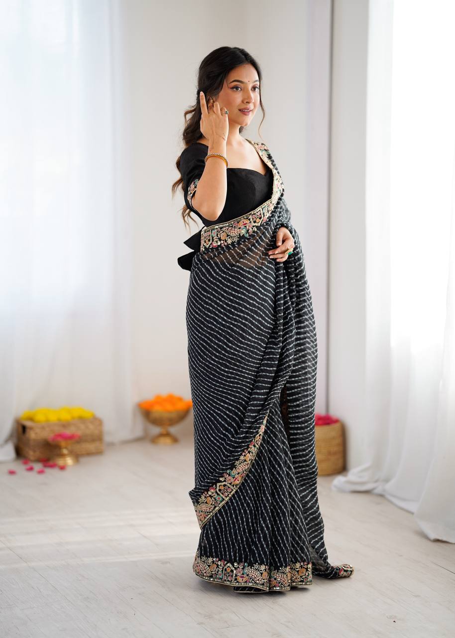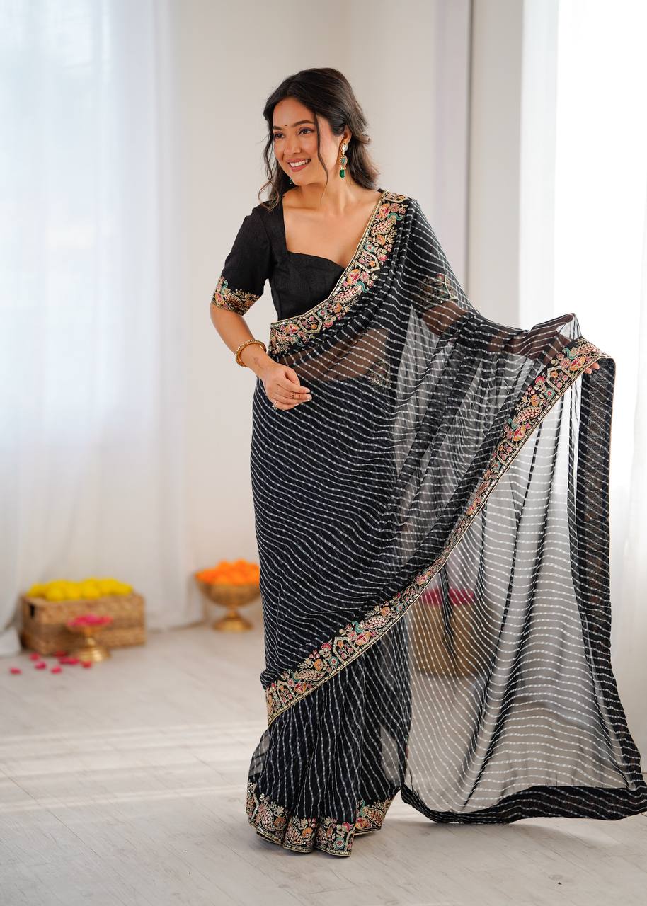 Designer Faux Georgette Saree with Sequins & Bandhani Print I RjPoshak