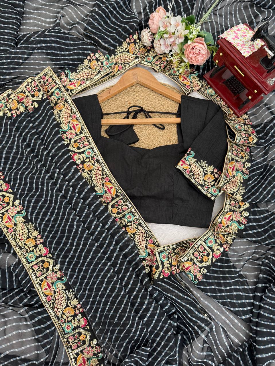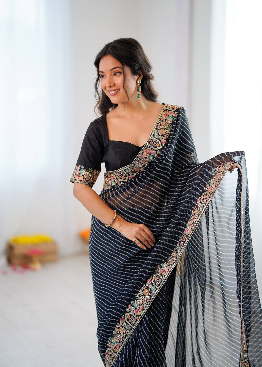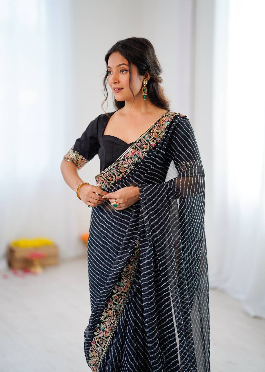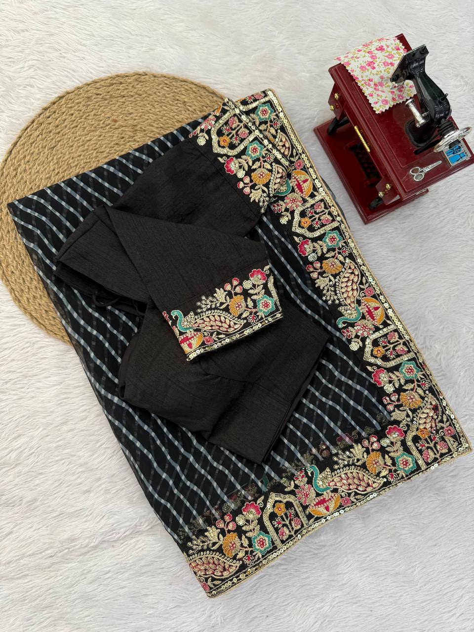 Designer Faux Georgette Saree with Sequins & Bandhani Print I RjPoshak