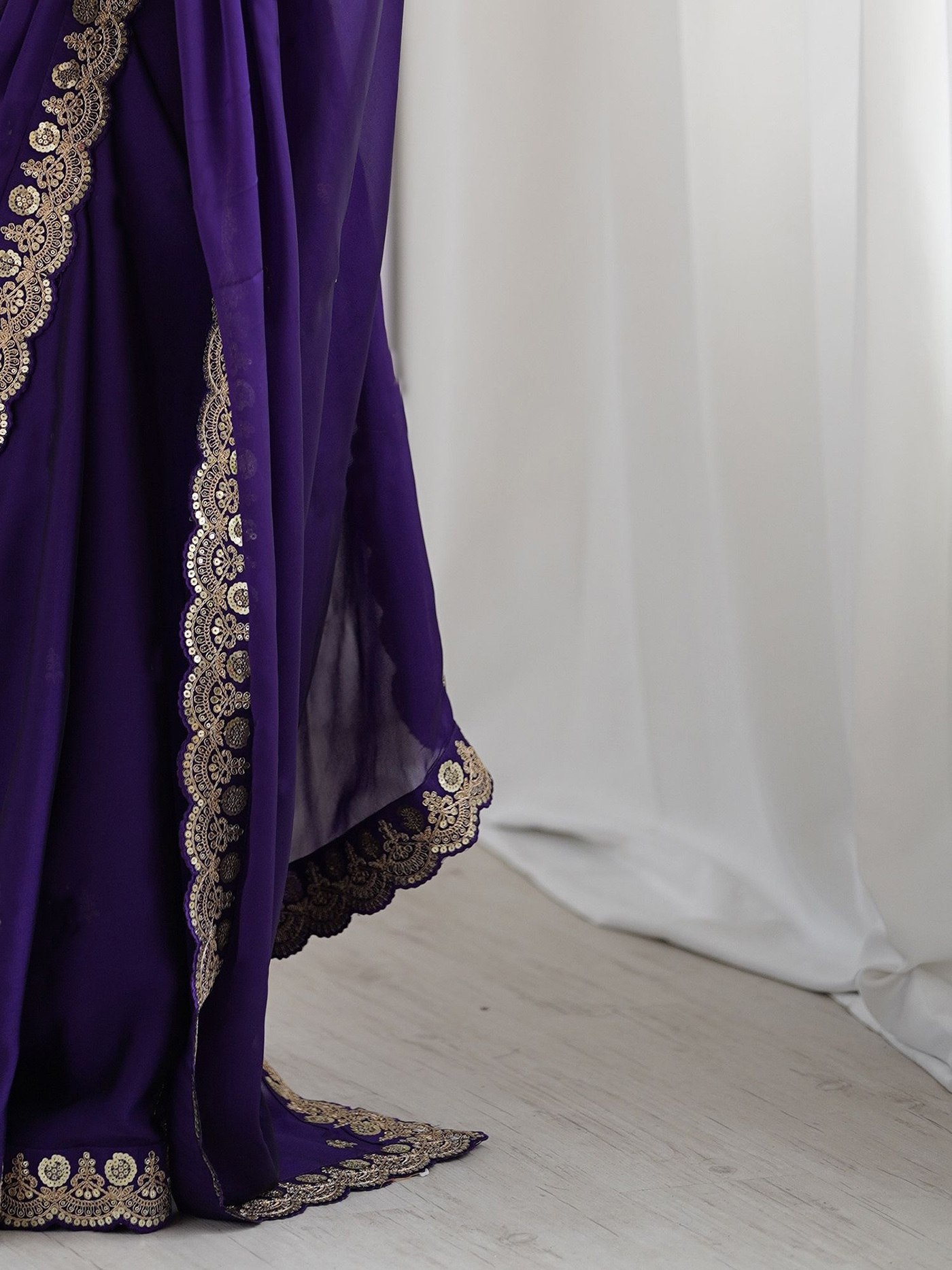 Enhance your elegance with this RjPoshak Purple Rangoli Saree, designed with beautiful embroidery and lace border. Lightweight and stylish, perfect for parties, festive occasions, and evening wear.
