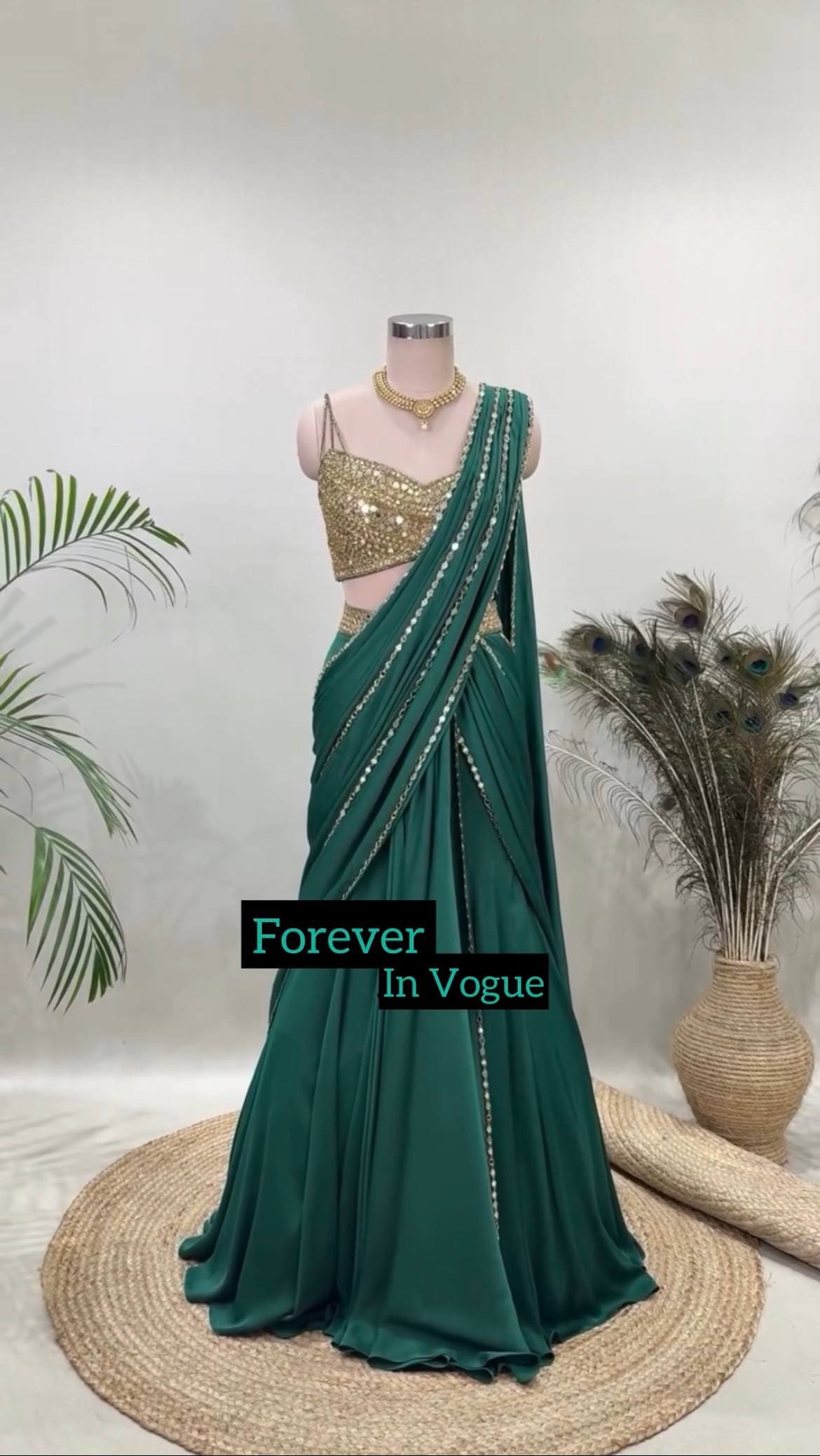 Faux Georgette Ready to wear Real Mirror Work Saree Embroidery Real Mirror• Attached Pallu • Glamour + Comfort in One Look