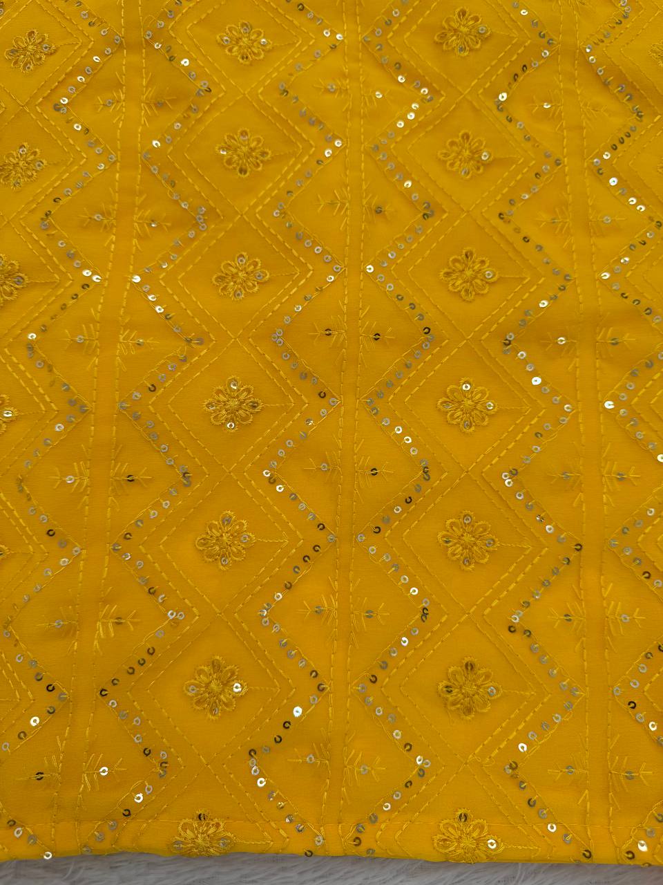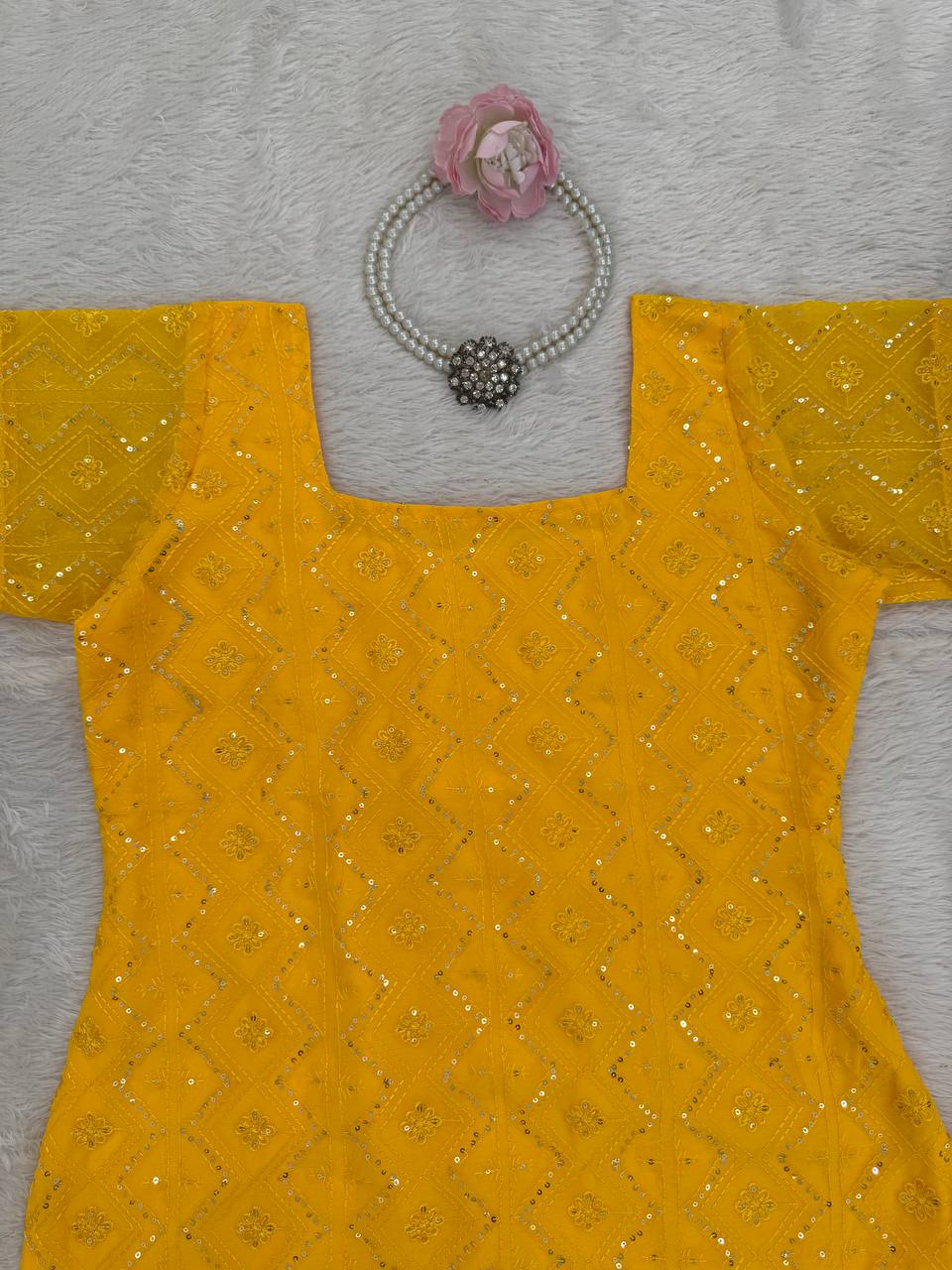 Upgrade your festive wardrobe with this elegant Yellow Designer Kurta Set from RjPoshak. Crafted in premium faux georgette with beautiful thread and sequence work, this stylish 3-piece set with bootcut pant and dupatta is perfect for weddings, festivals, and special occasions.